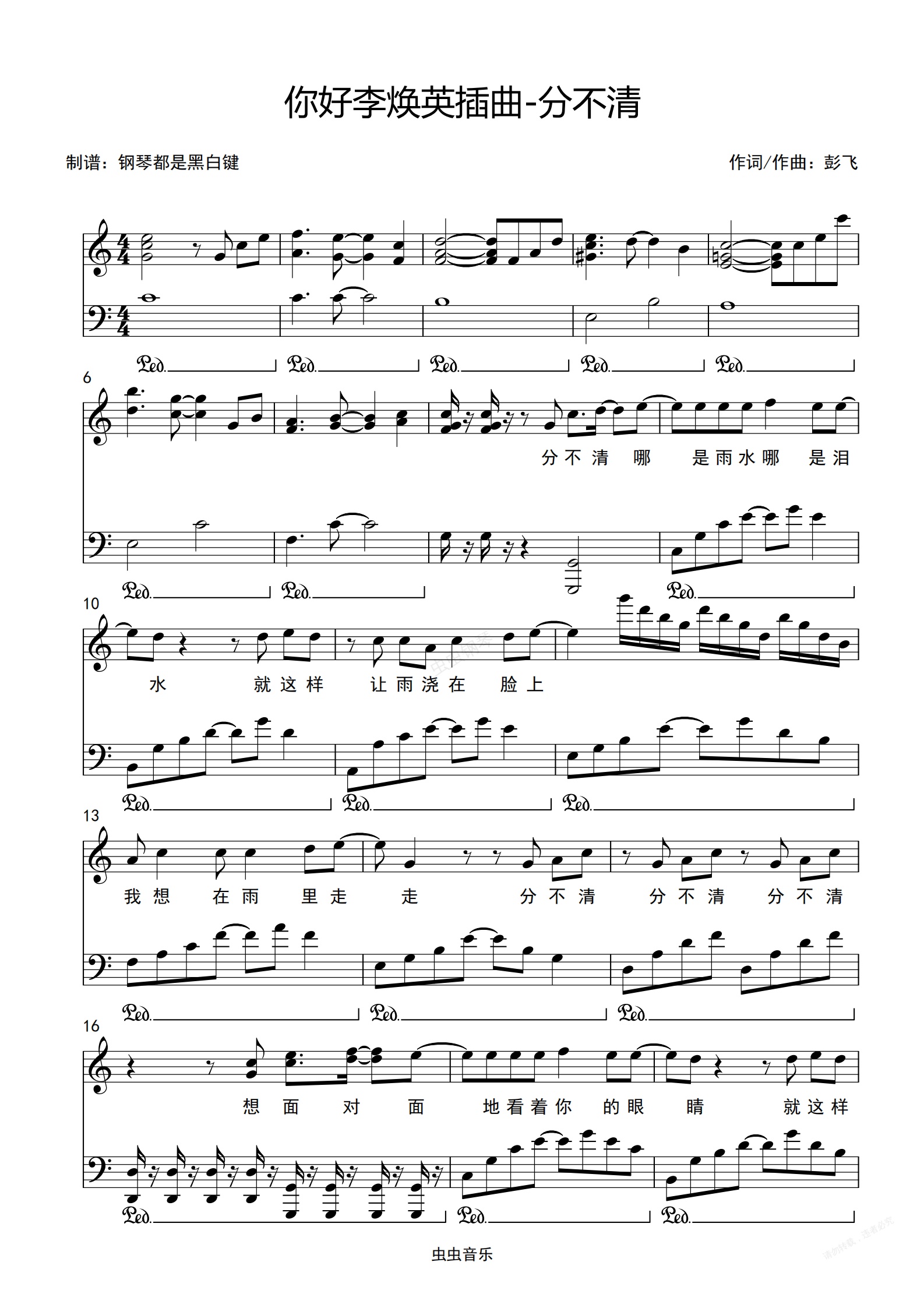 钢琴谱:《你好,李焕英》插曲 分不清C调 附歌词
