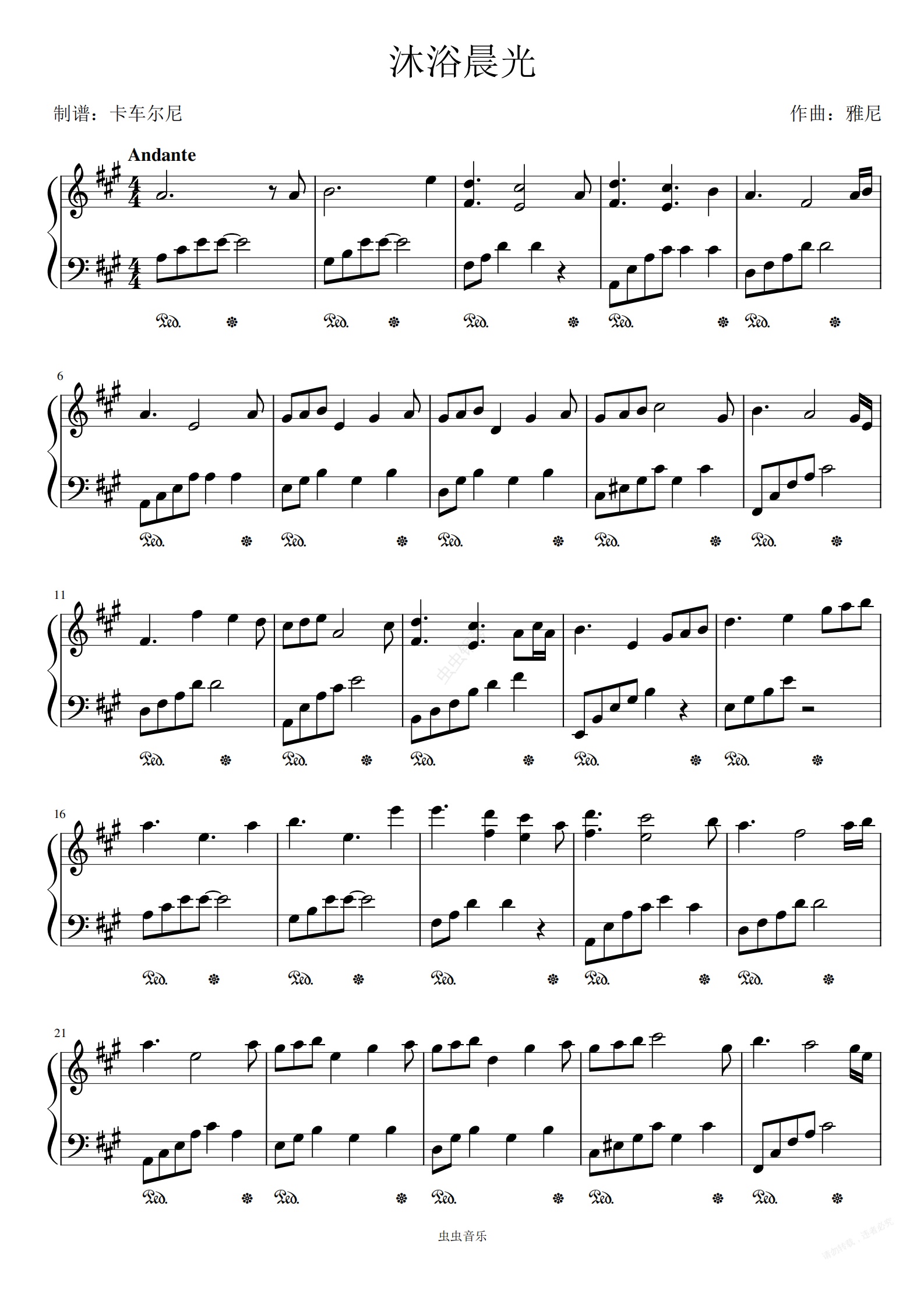 钢琴谱:雅尼《沐浴晨光》钢琴独奏演奏版