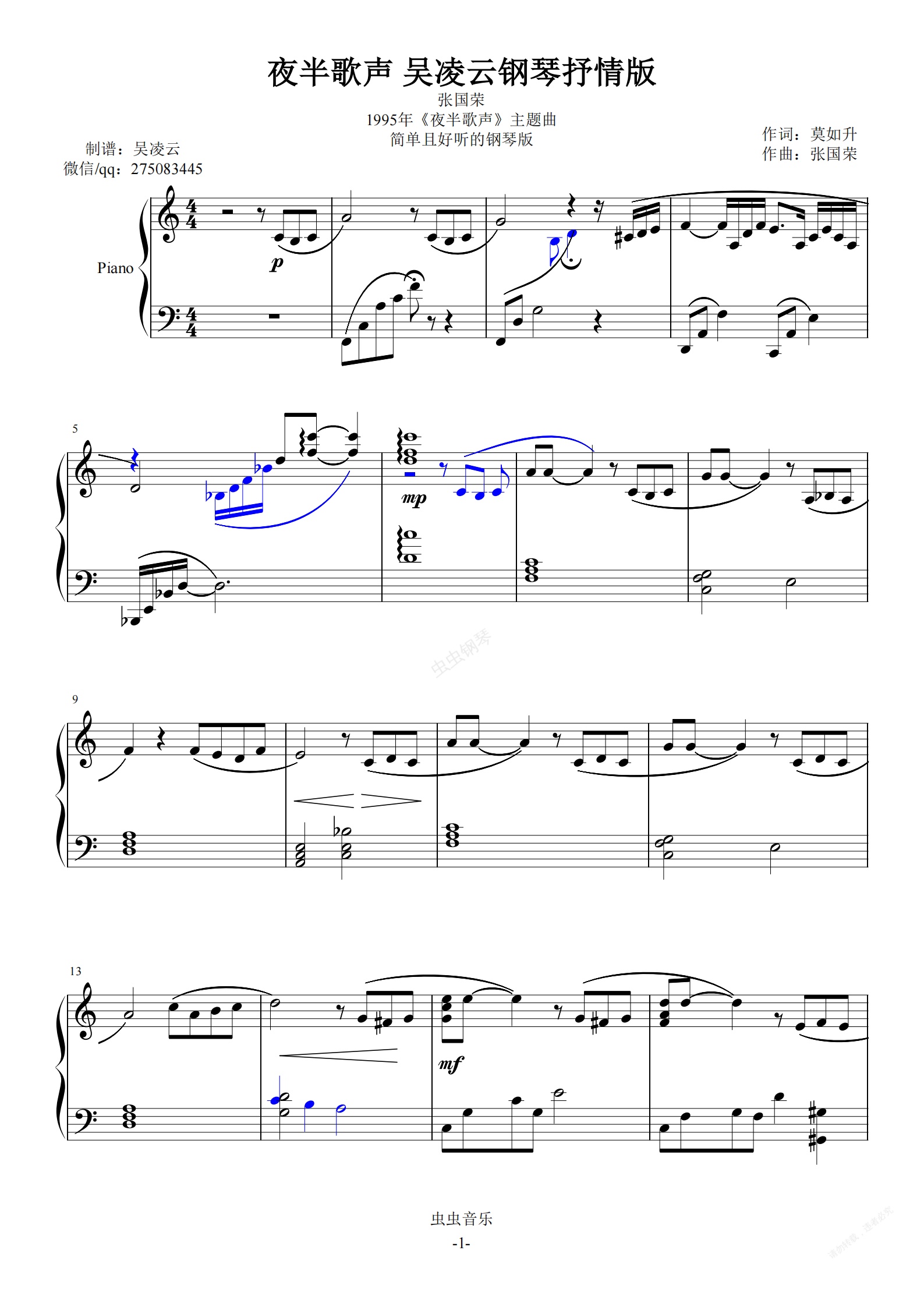 钢琴谱:夜半歌声 张国荣 1995年《夜半歌声》主题曲 简单且好听 吴凌云钢琴抒情版