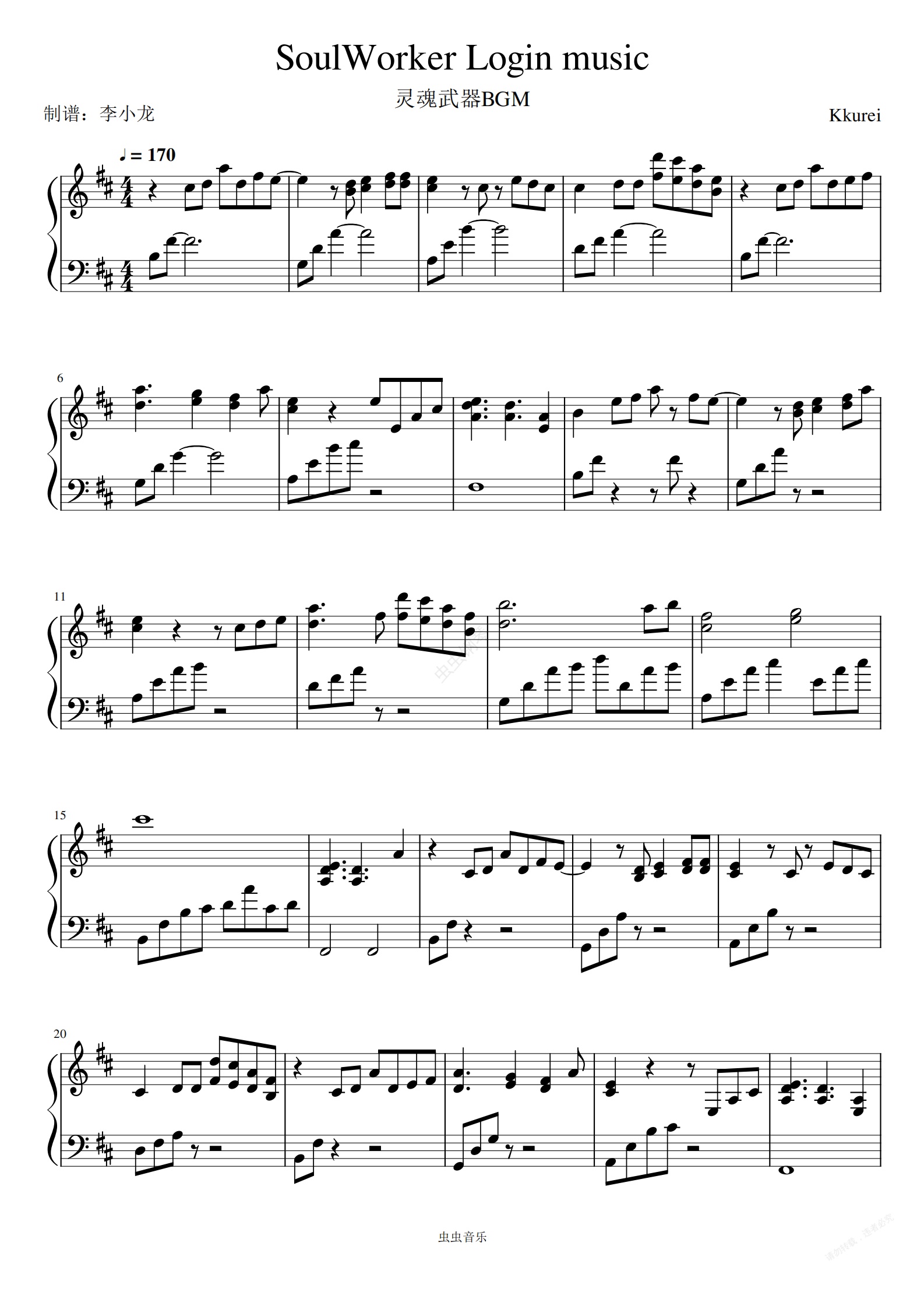 钢琴谱:灵魂武器BGM-SoulWorker Login music