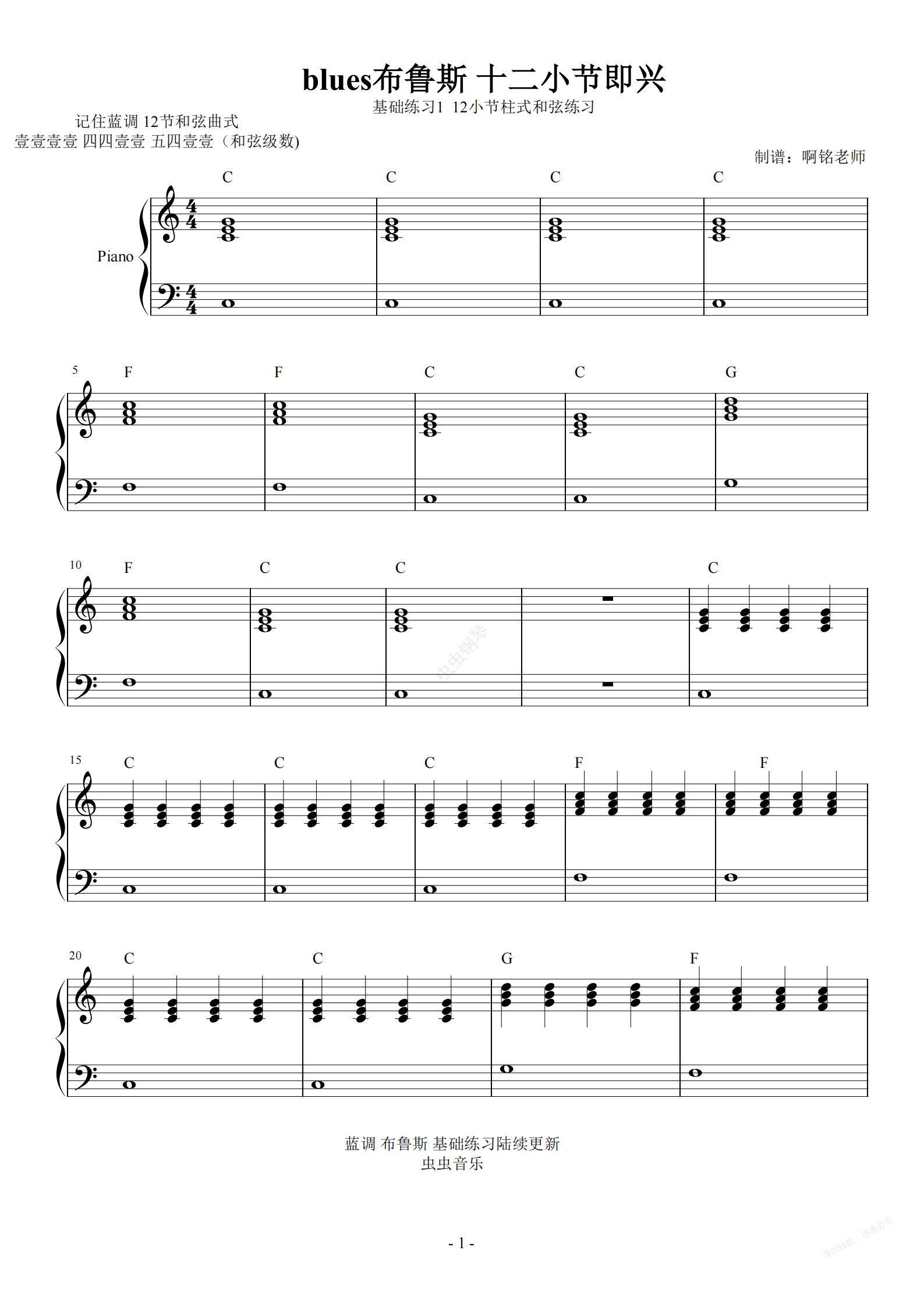 钢琴谱:BLUES 蓝调布鲁斯 基础练习1