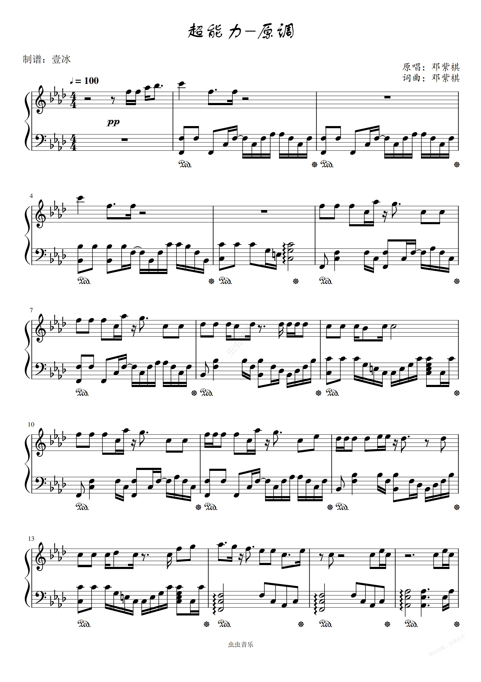 钢琴谱:超能力//邓紫棋-原调版