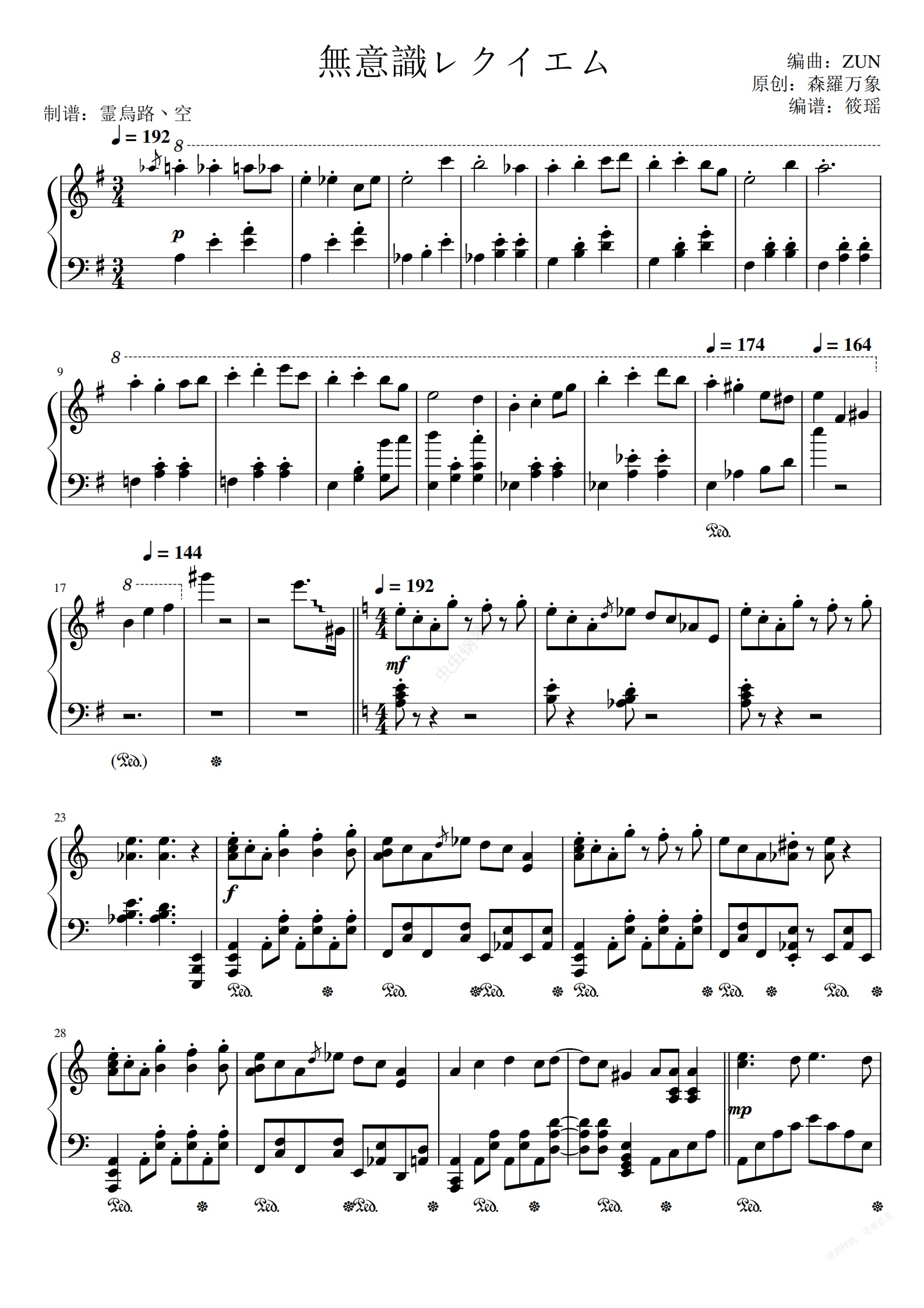 钢琴谱:无意识安魂曲(哈德曼的妖怪少女