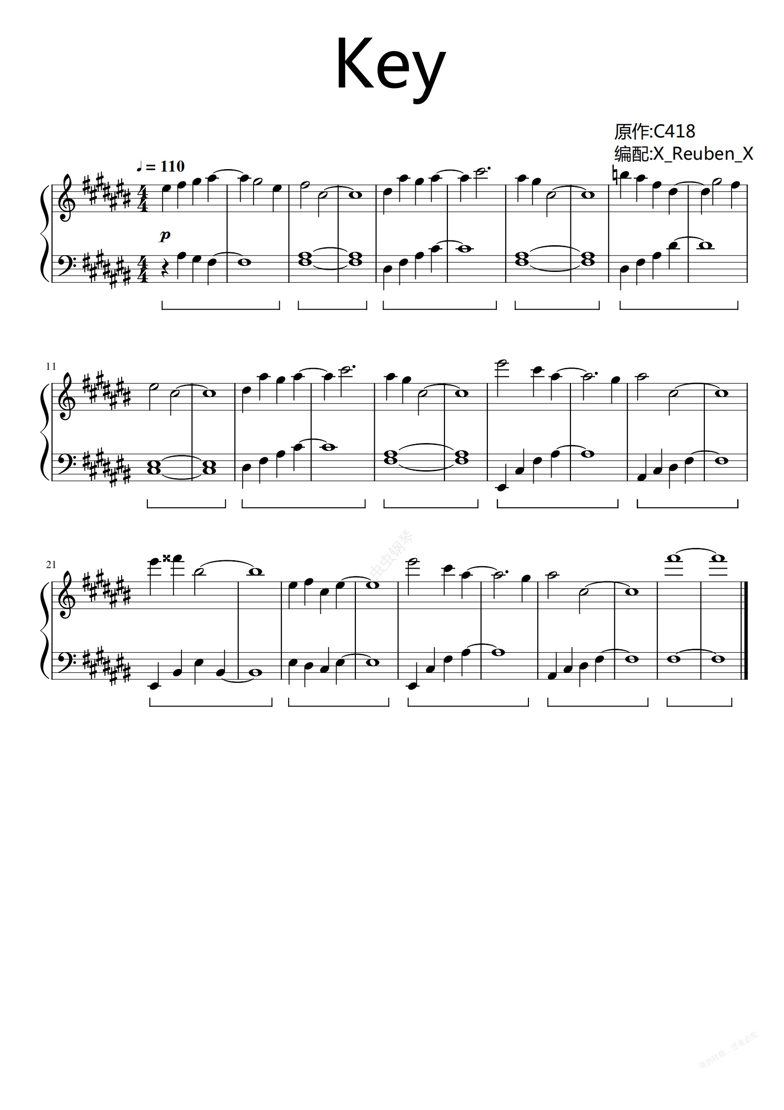 钢琴谱:【Minecraft】我的世界BGM-Key