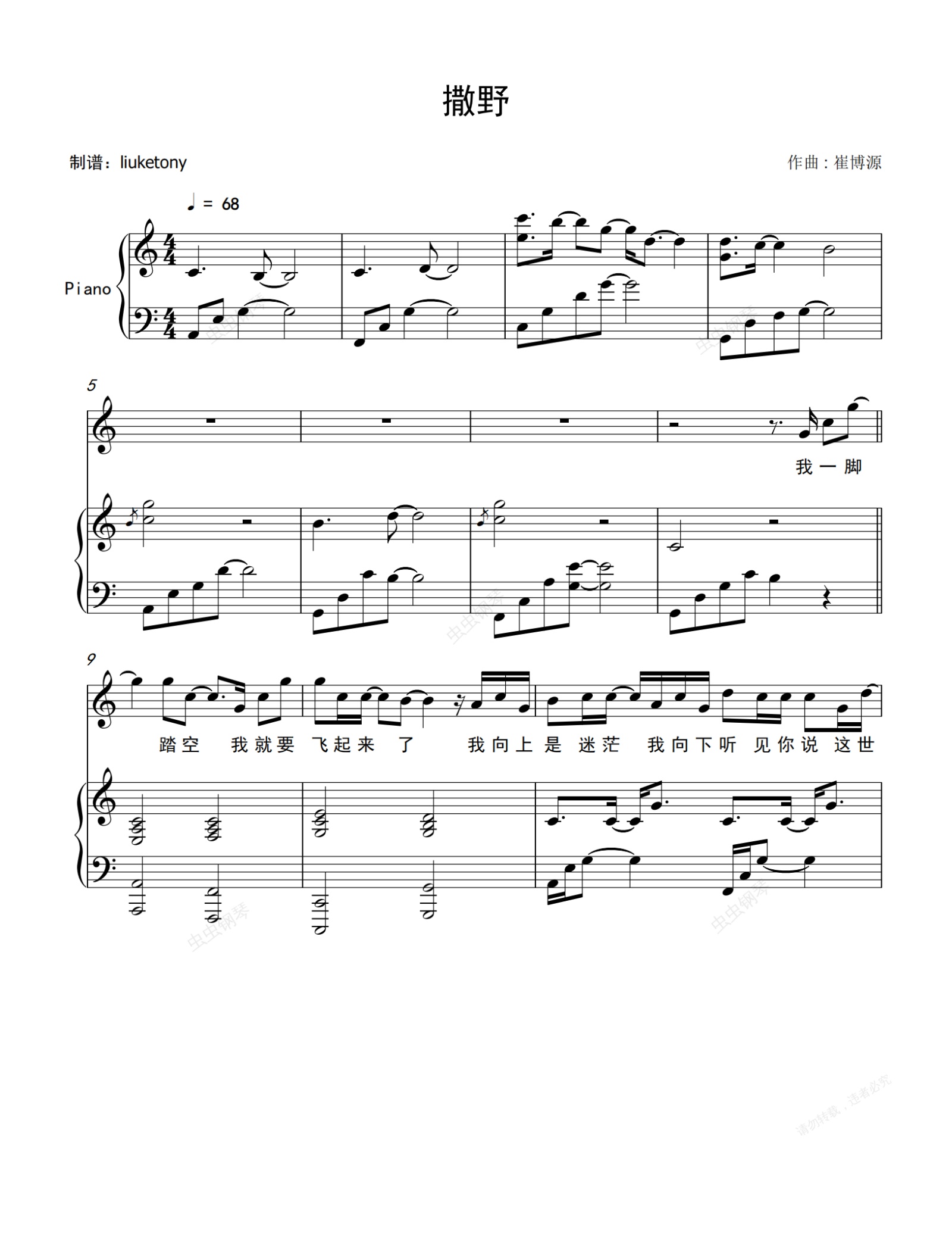 钢琴谱:《撒野》广播剧官方插曲