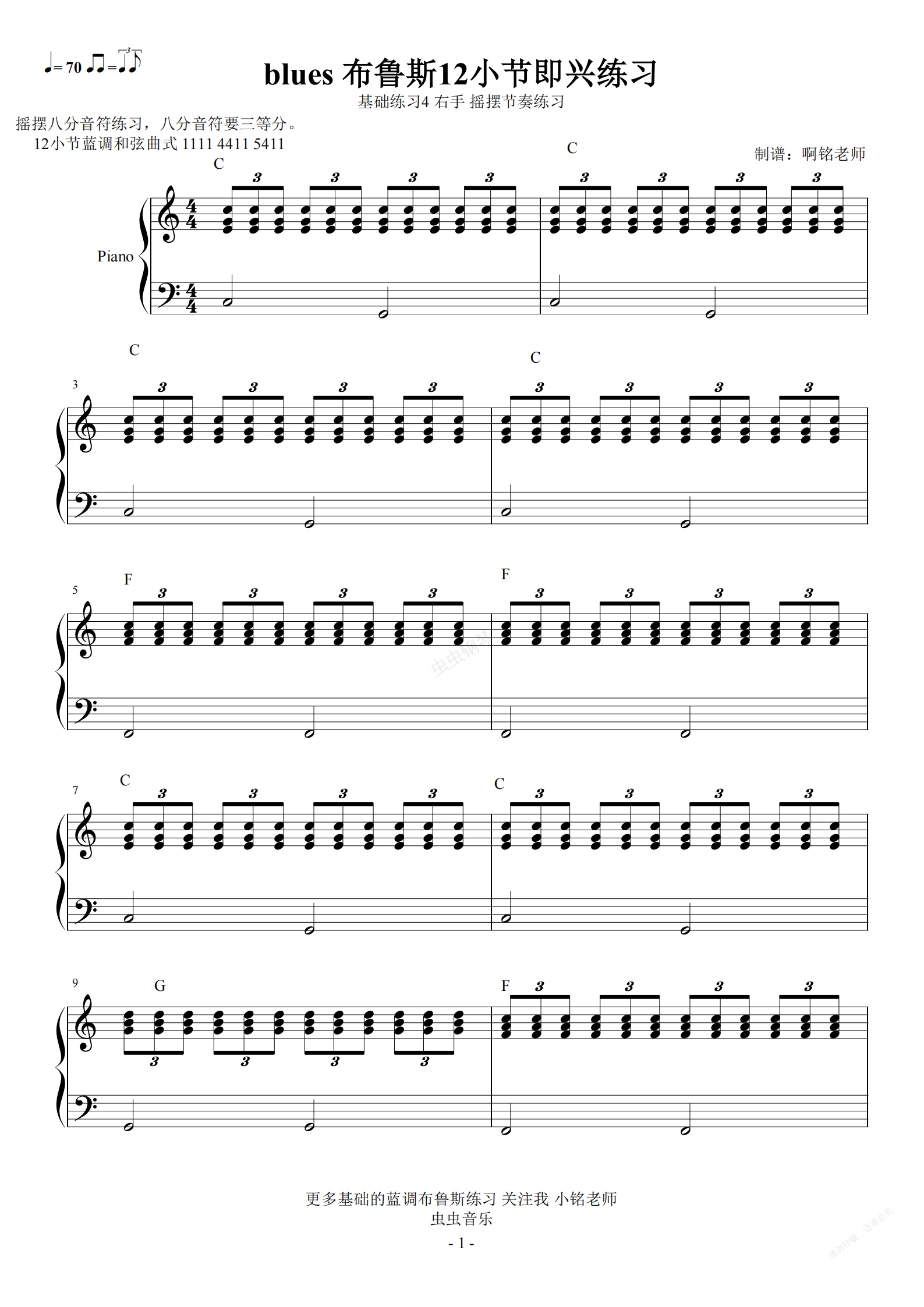 钢琴谱:BLLUES 布鲁斯蓝调 基础练习4