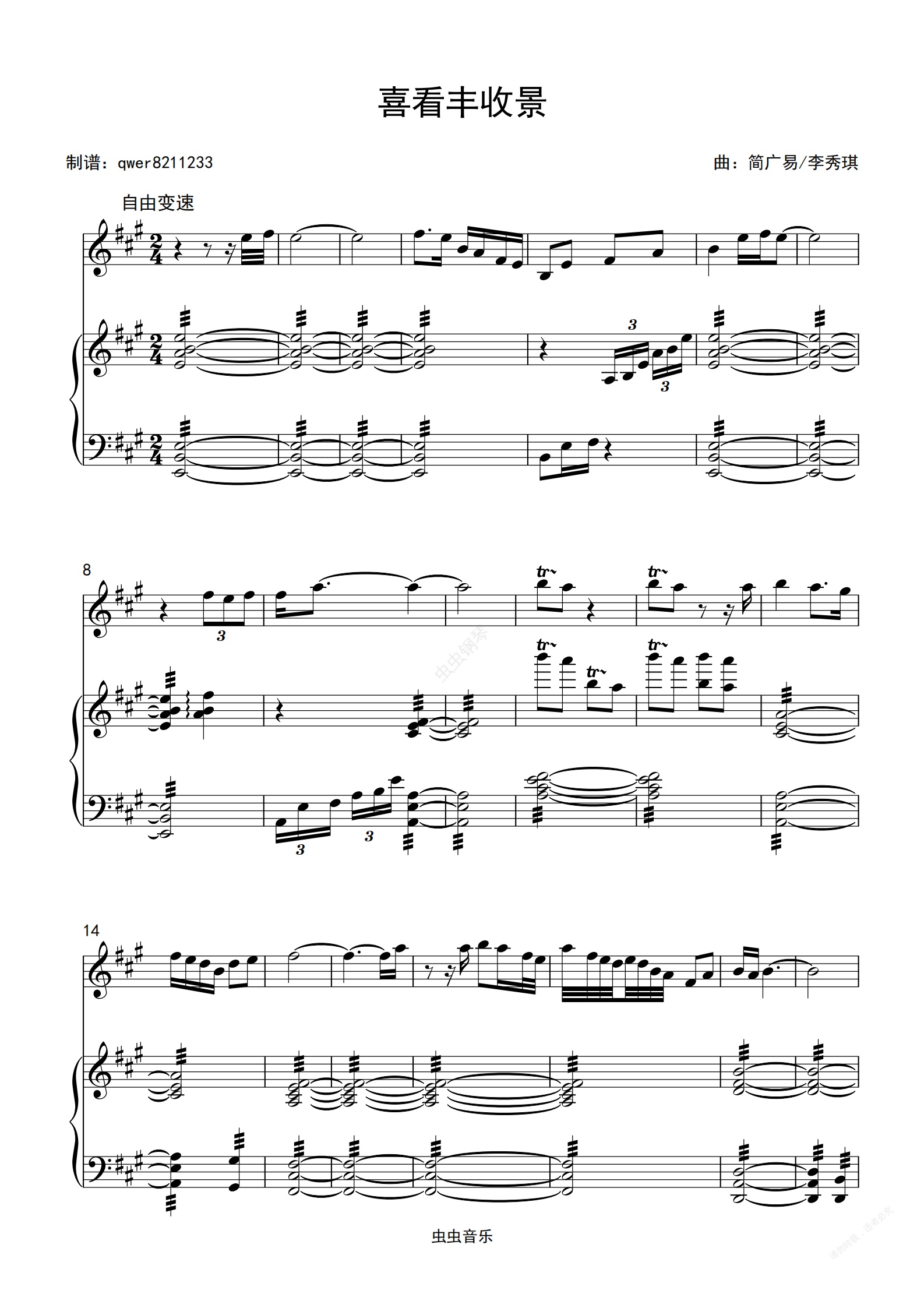 钢琴谱:喜看丰收景(正谱)
