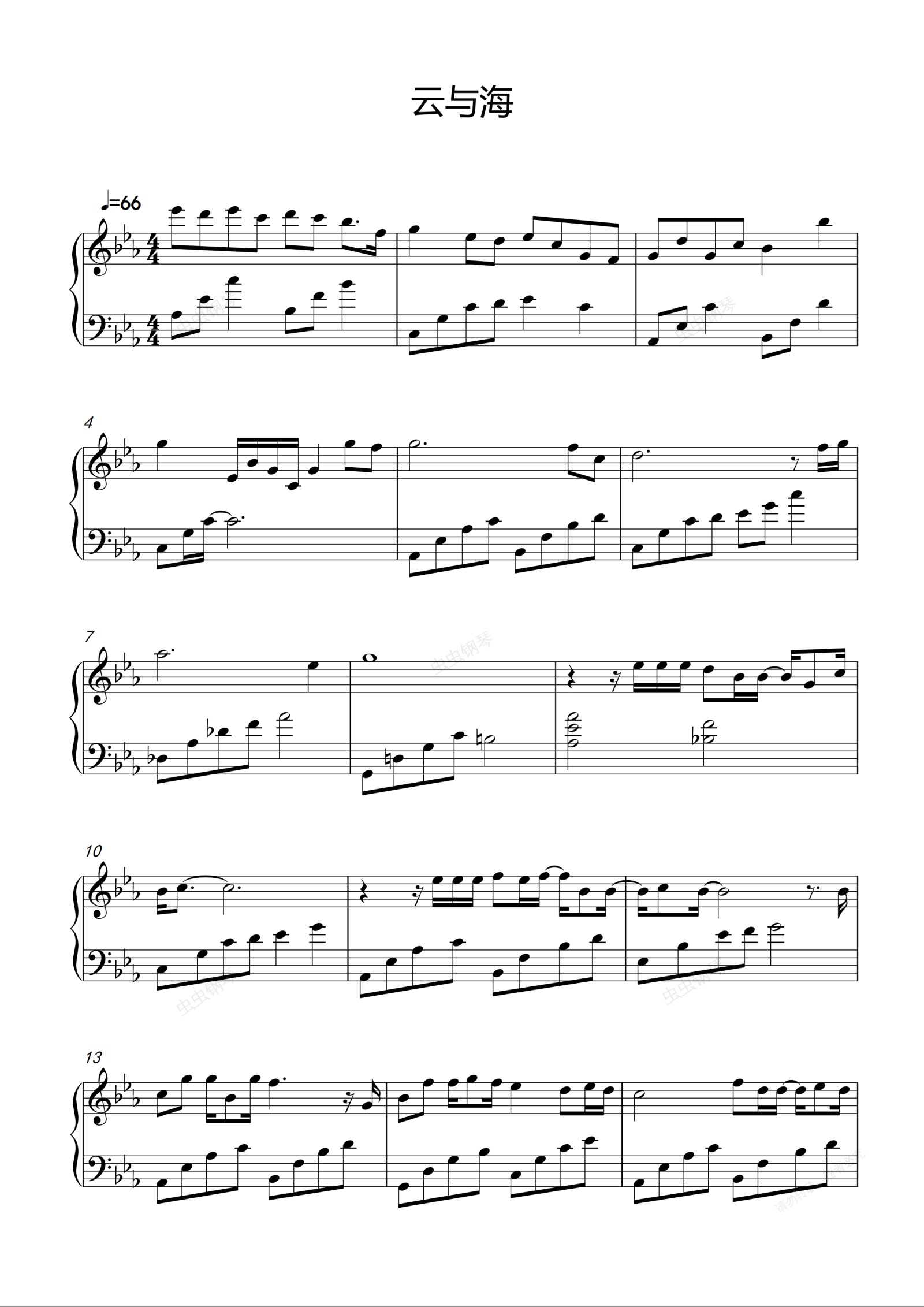 钢琴谱:[bE原调] 云与海-阿YueYue〖简易动听〗