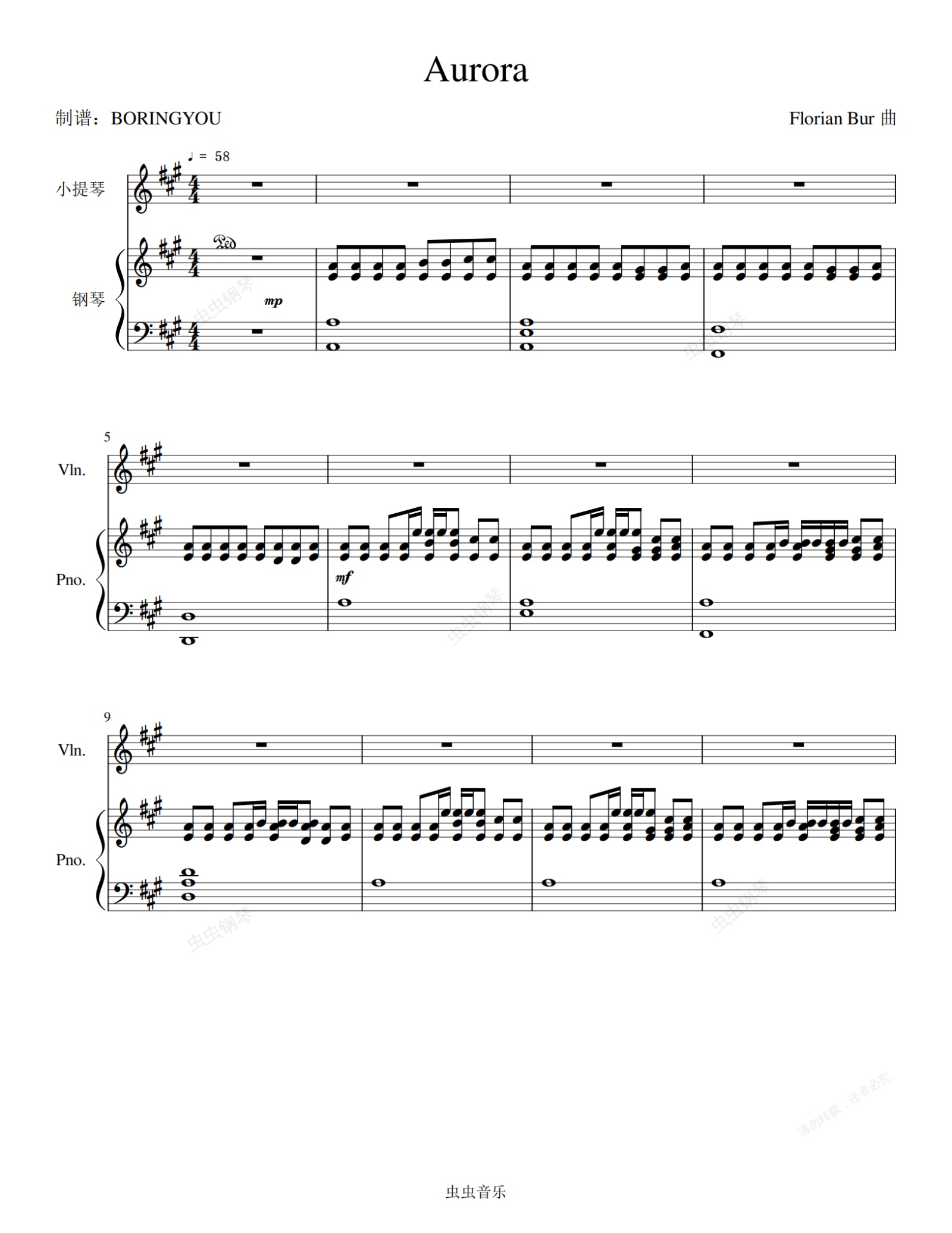 钢琴谱:Florian Bur - 《Aurora》二重奏