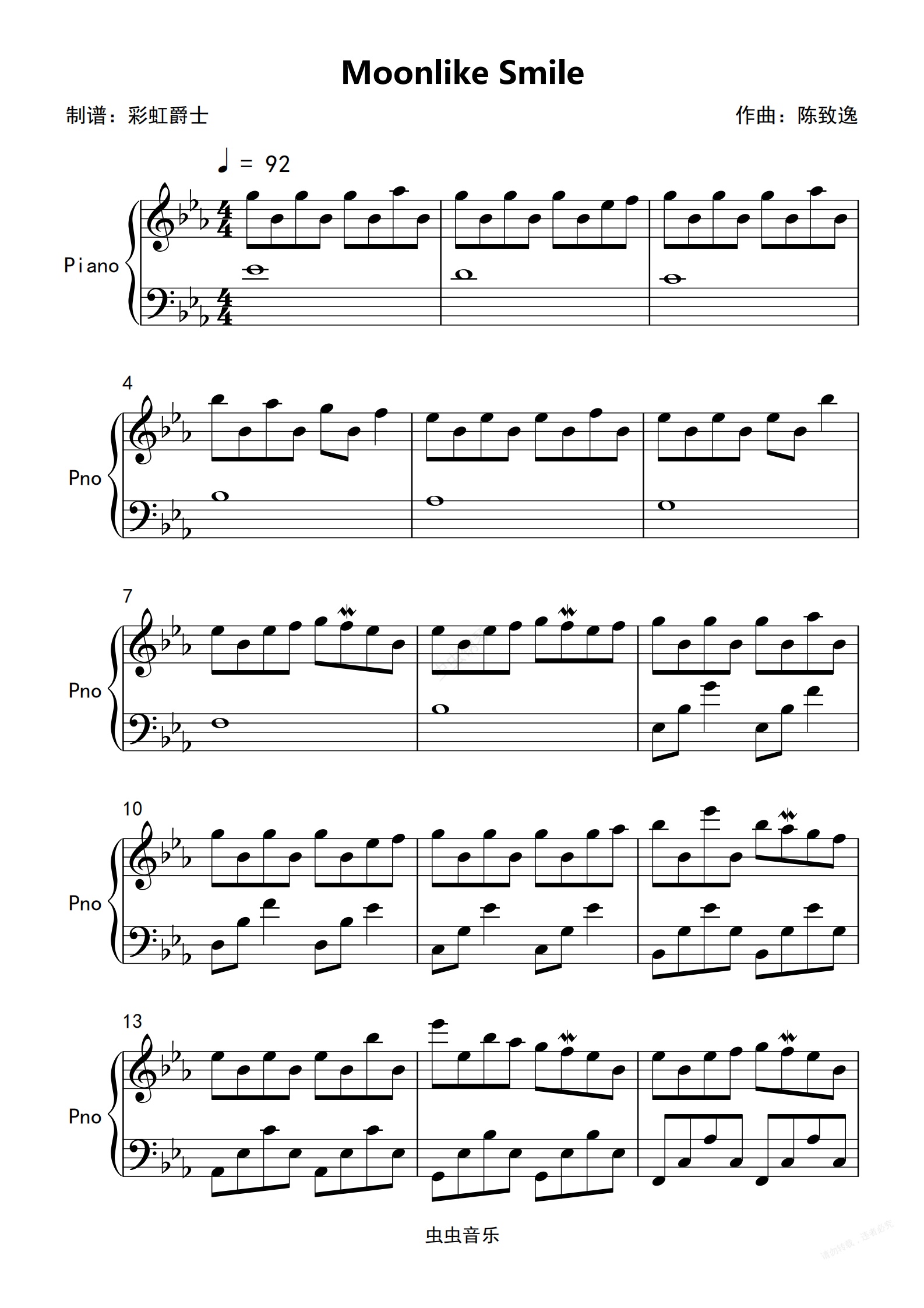 钢琴谱:Moonlike Smile 皎洁的笑颜 原神雪山音乐