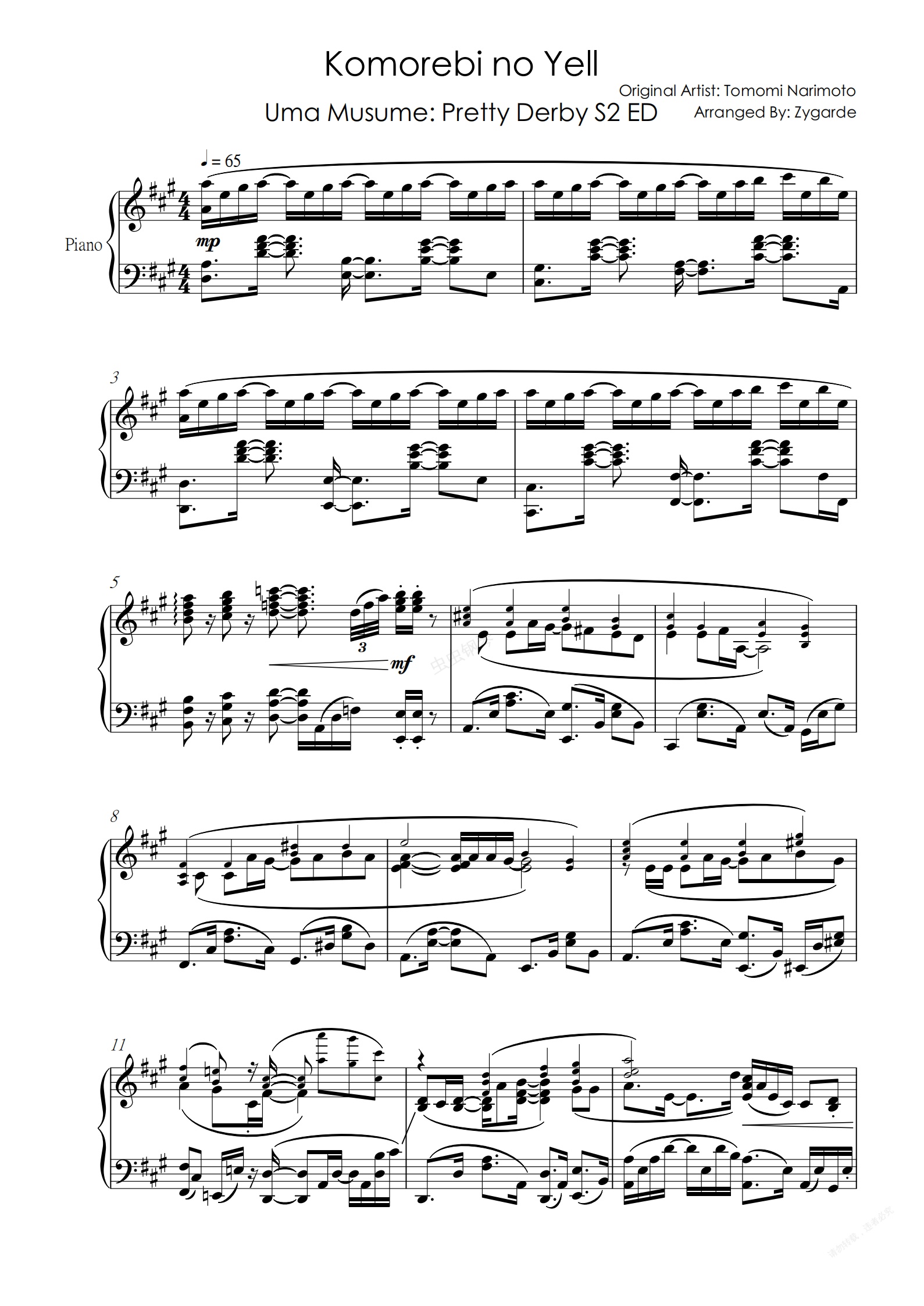 钢琴谱:【编曲向】木漏れ日のエール - 赛马娘 Pretty Derby 第二季 ED