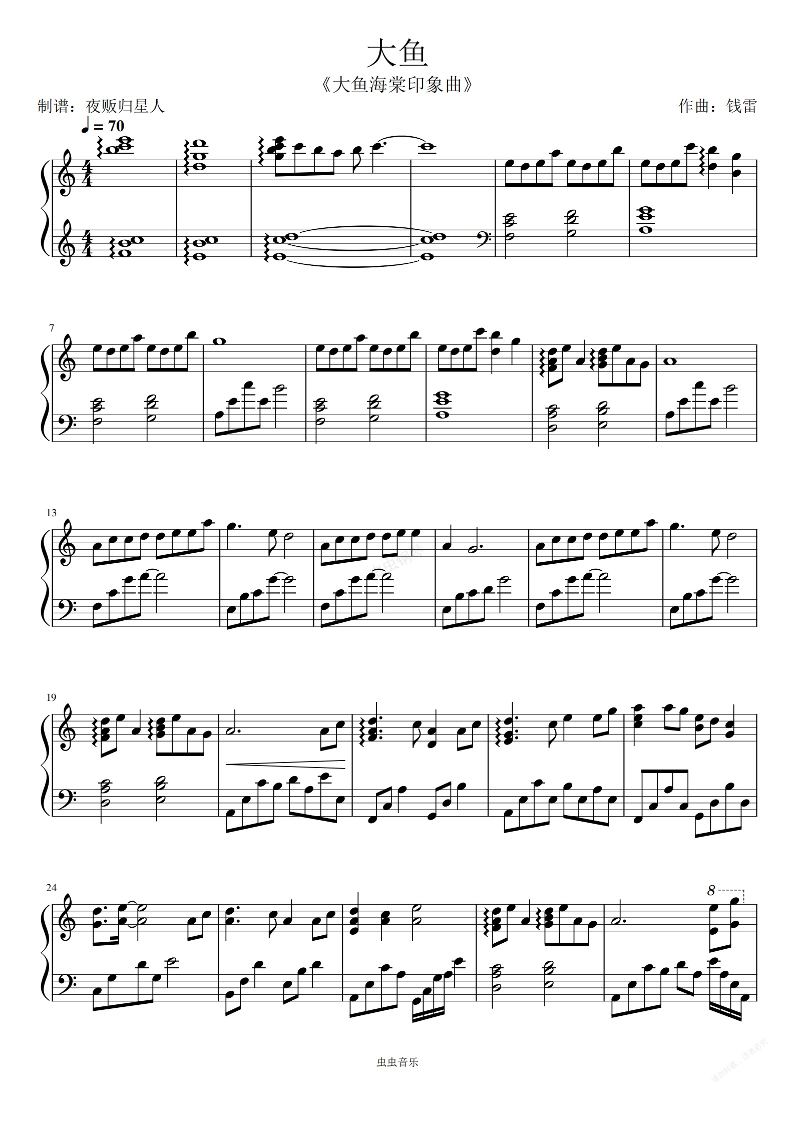 钢琴谱:《大鱼》-周深 大鱼海棠
