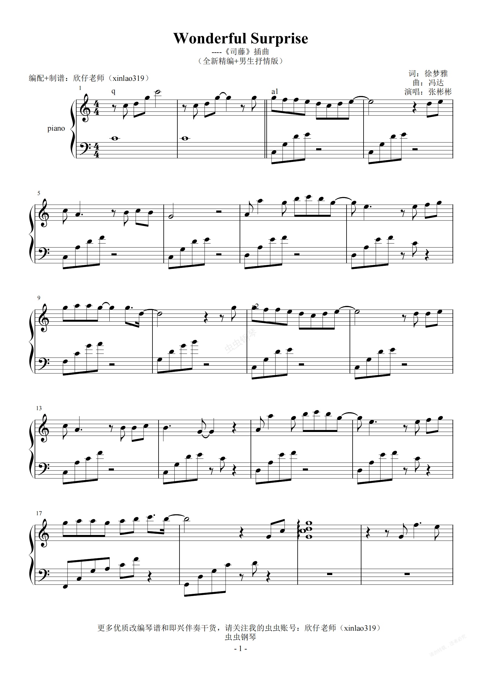 钢琴谱:张彬彬《Wonderful Surprise》(男生抒情版+全新精编)