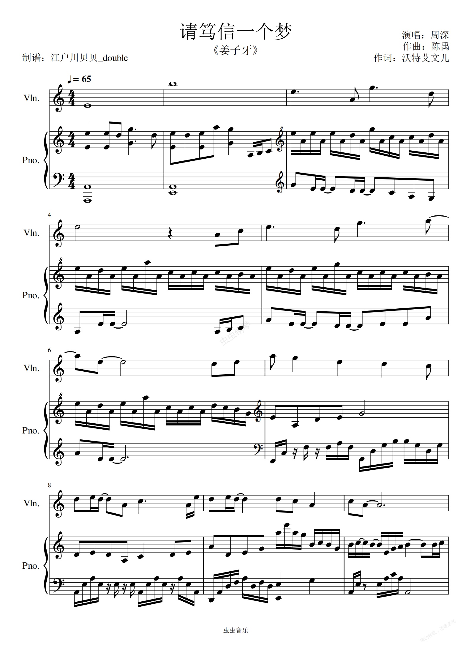钢琴谱:【钢琴&小提琴】周深《请笃信一个梦》(合奏谱)