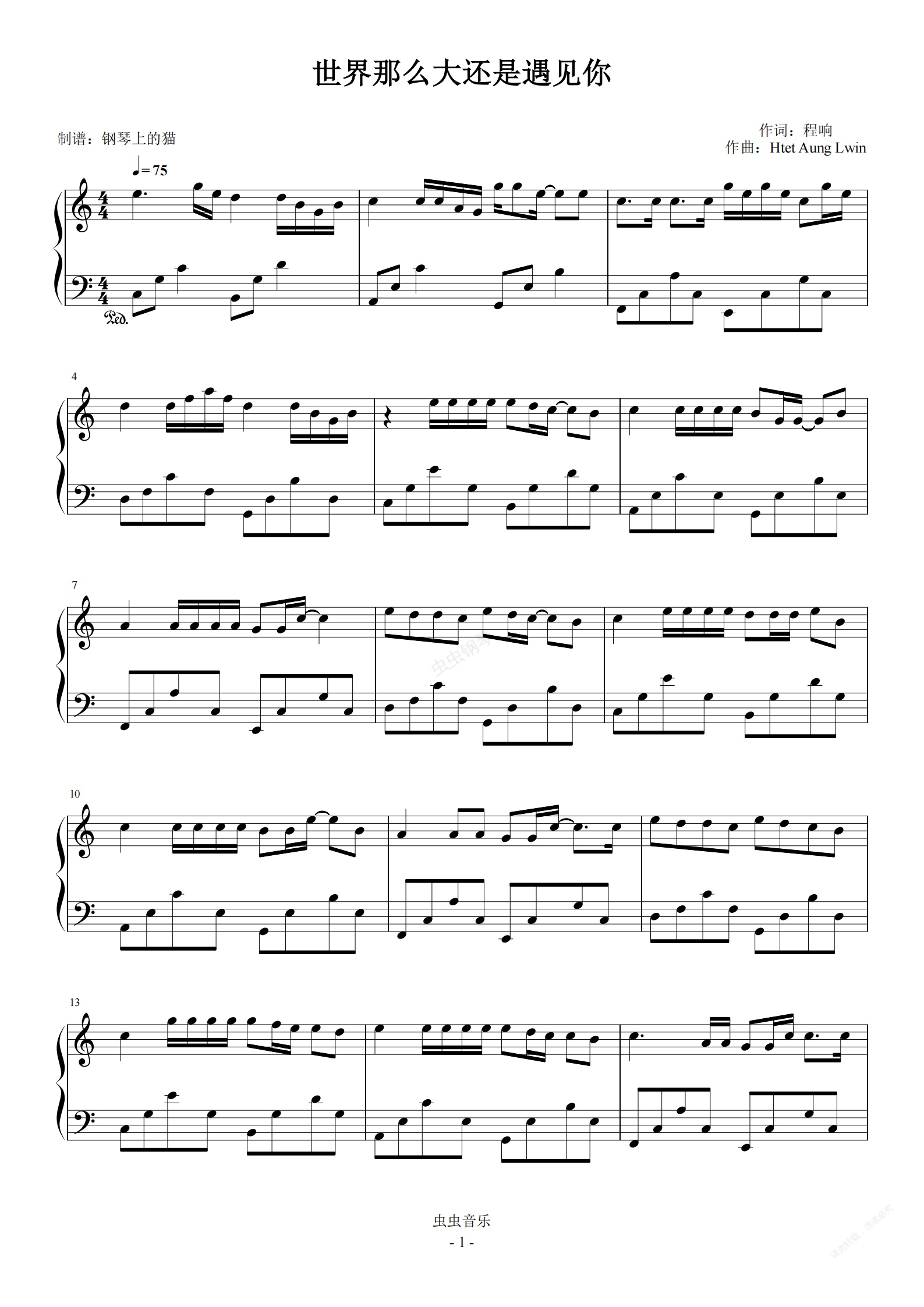 钢琴谱:世界那么大还是遇见你 C调简易版