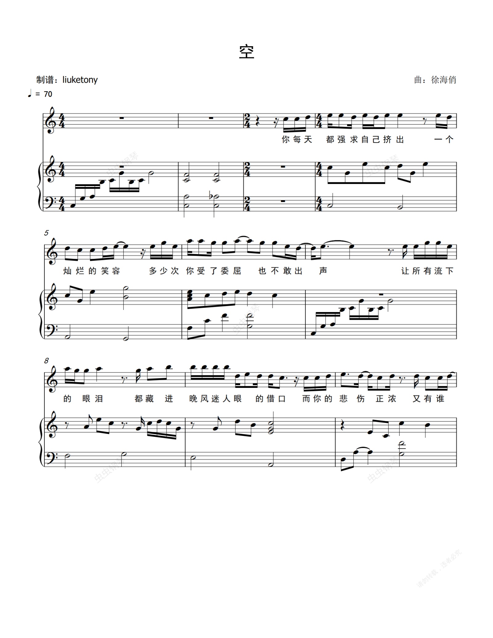 钢琴谱:空 - 徐海俏 钢琴伴奏谱
