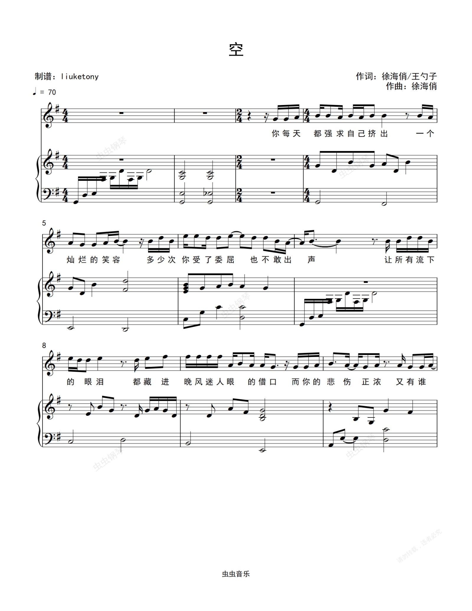 钢琴谱:空 - 徐海俏 钢琴伴奏谱 G调