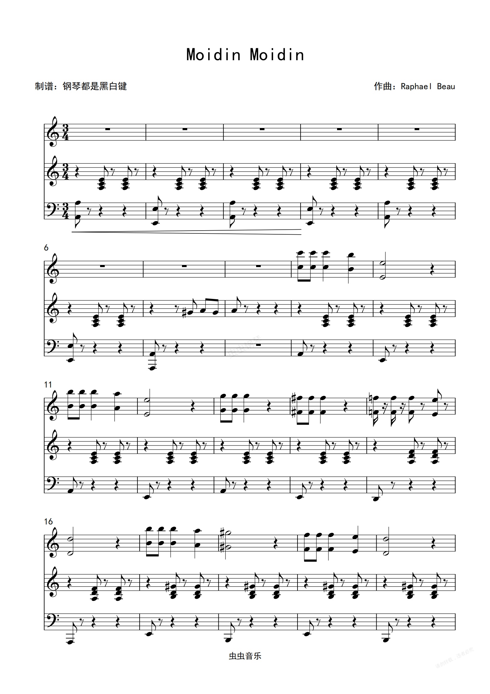 钢琴谱:《尽情游戏》-- Moidin Moidin C调 专业扒谱百分百还原