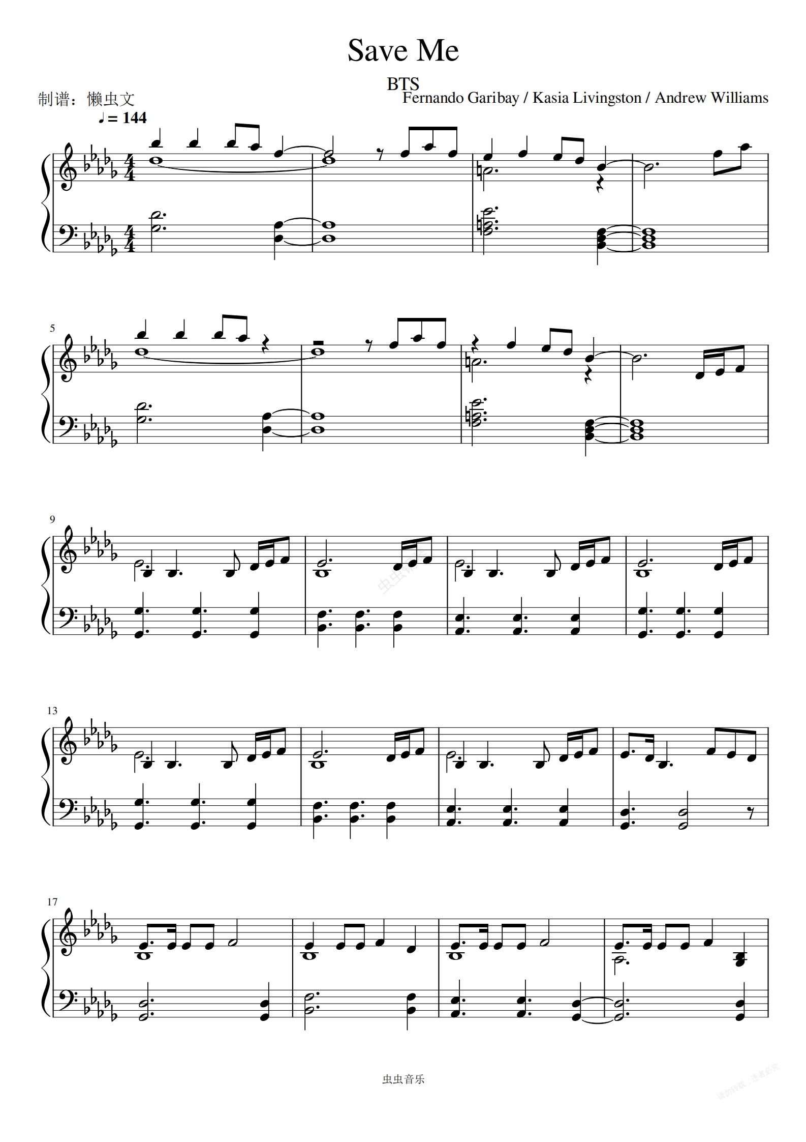 钢琴谱:BTS -《Save Me》