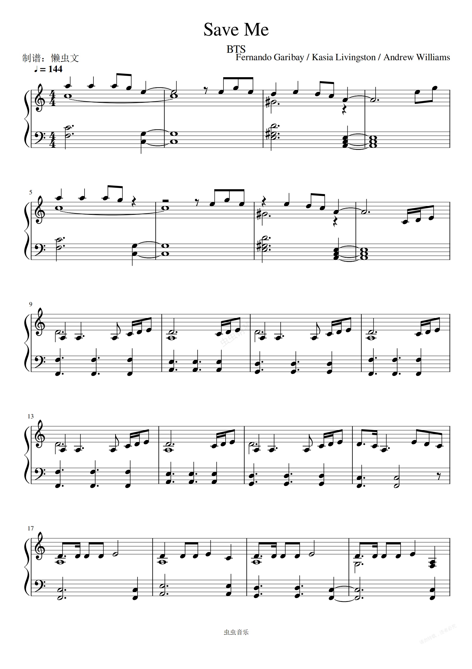 钢琴谱:BTS -《Save Me》