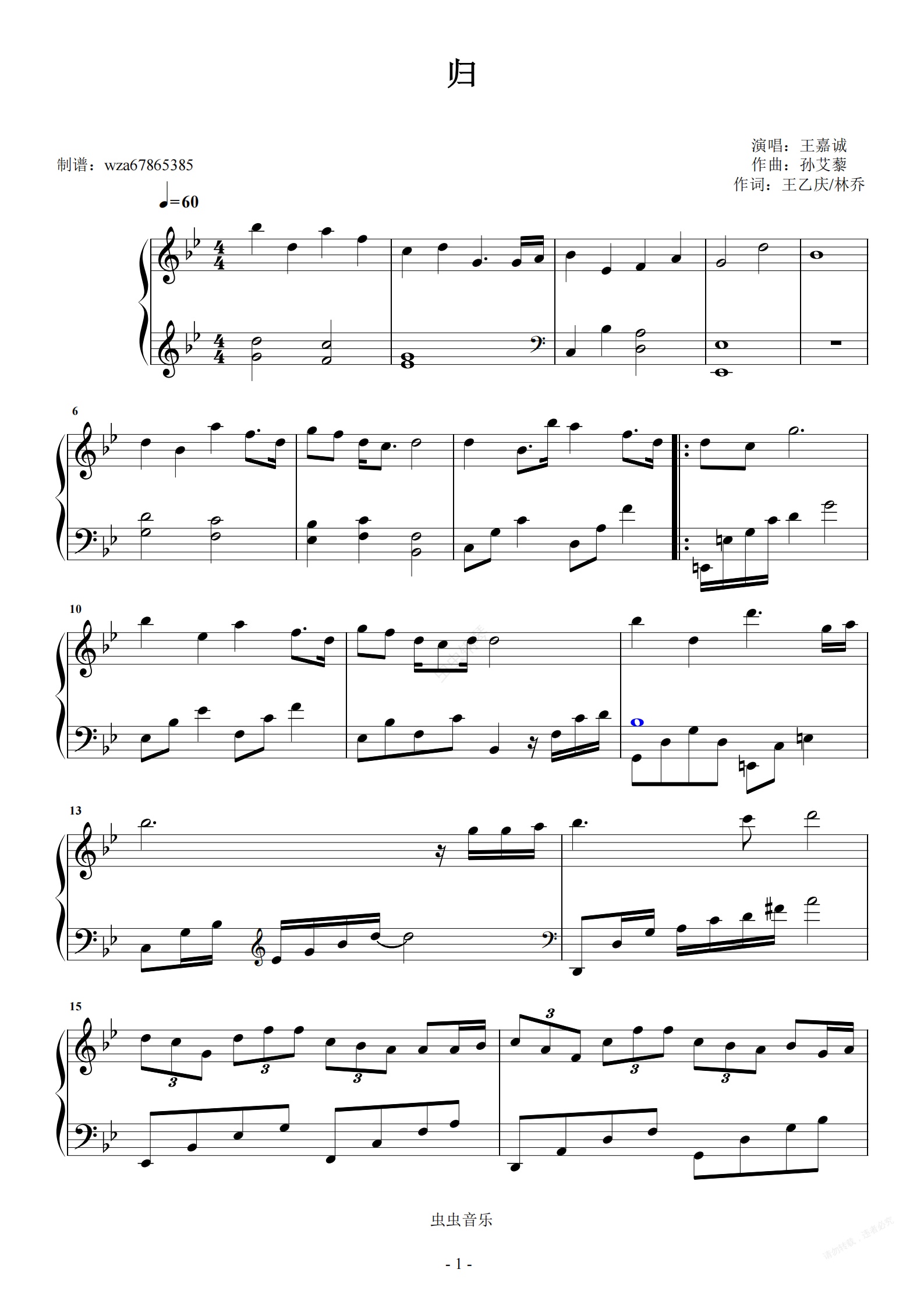 钢琴谱:归