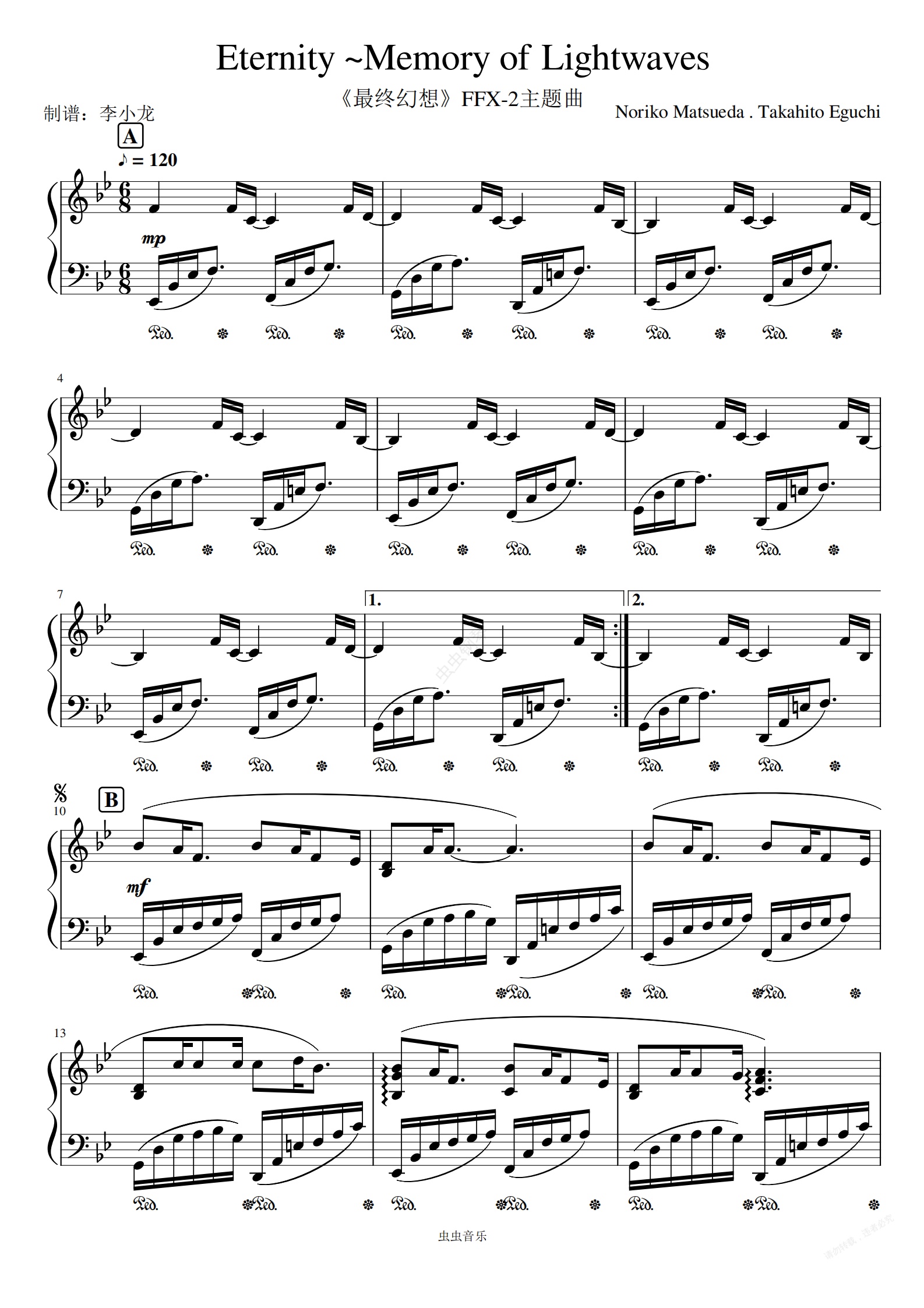 钢琴谱:《最终幻想》-Eternity ~Memory of Lightwaves