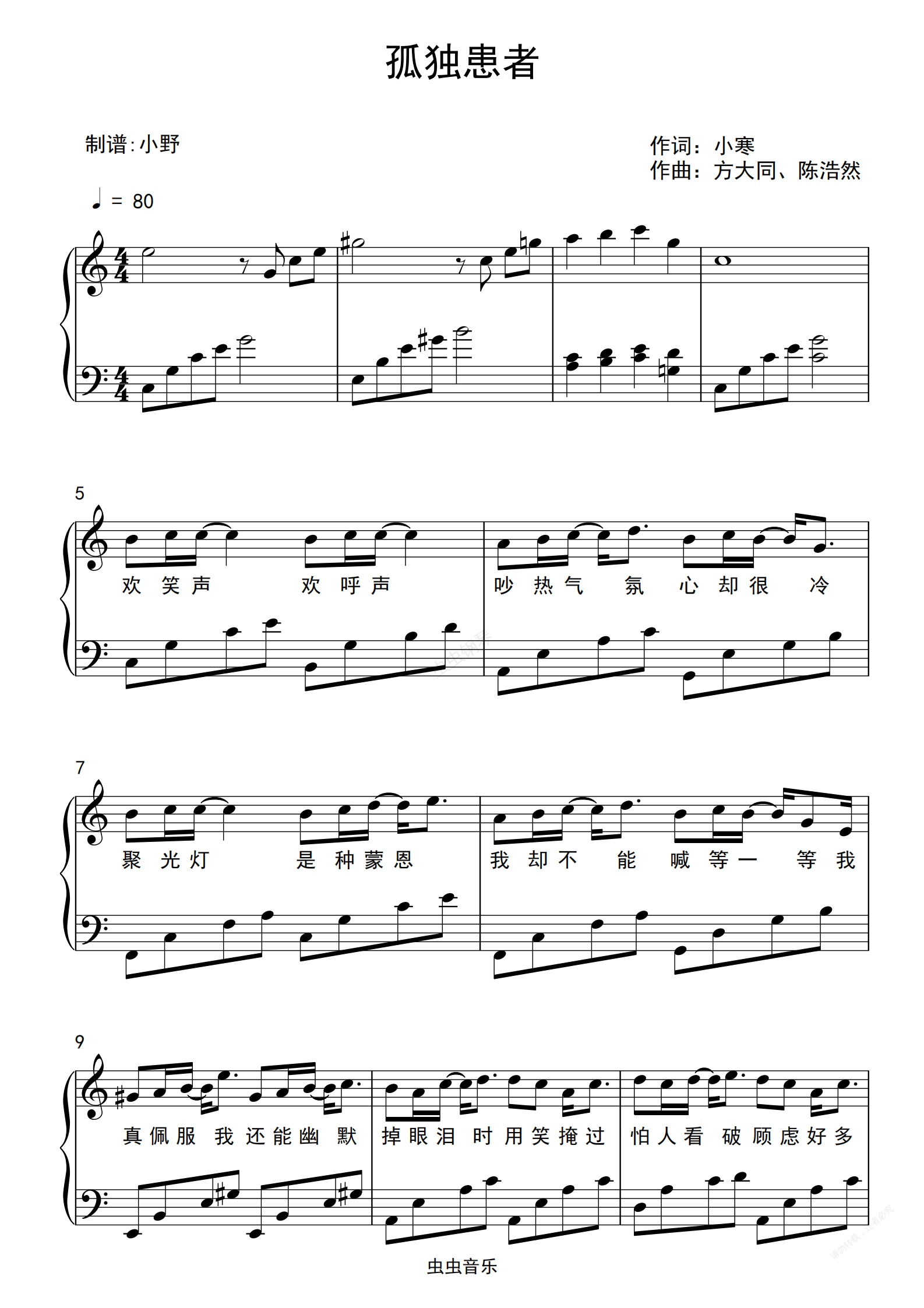 钢琴谱:孤独患者