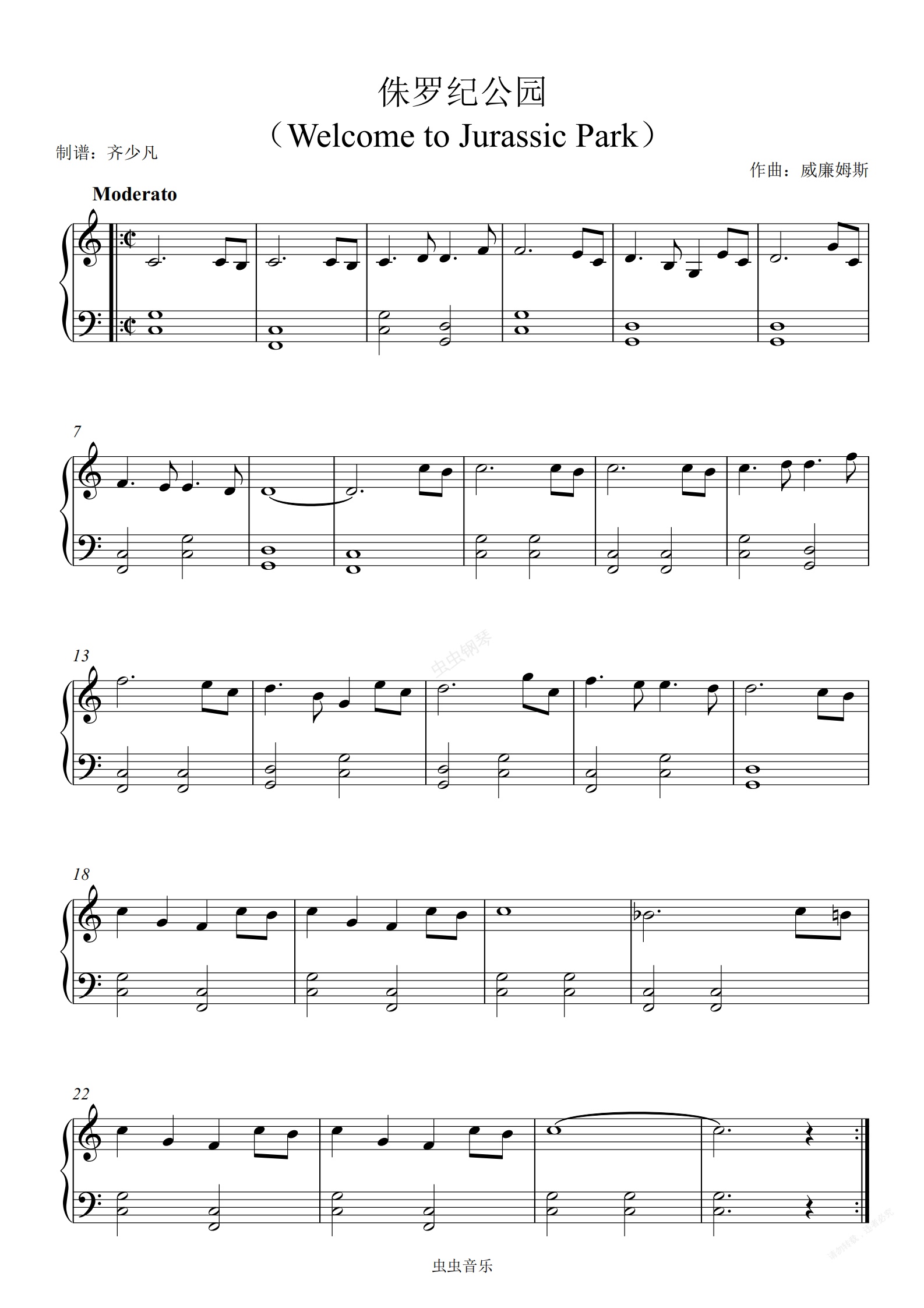 钢琴谱:【初学者】欢迎来到侏罗纪公园 Welcome to Jurassic Park