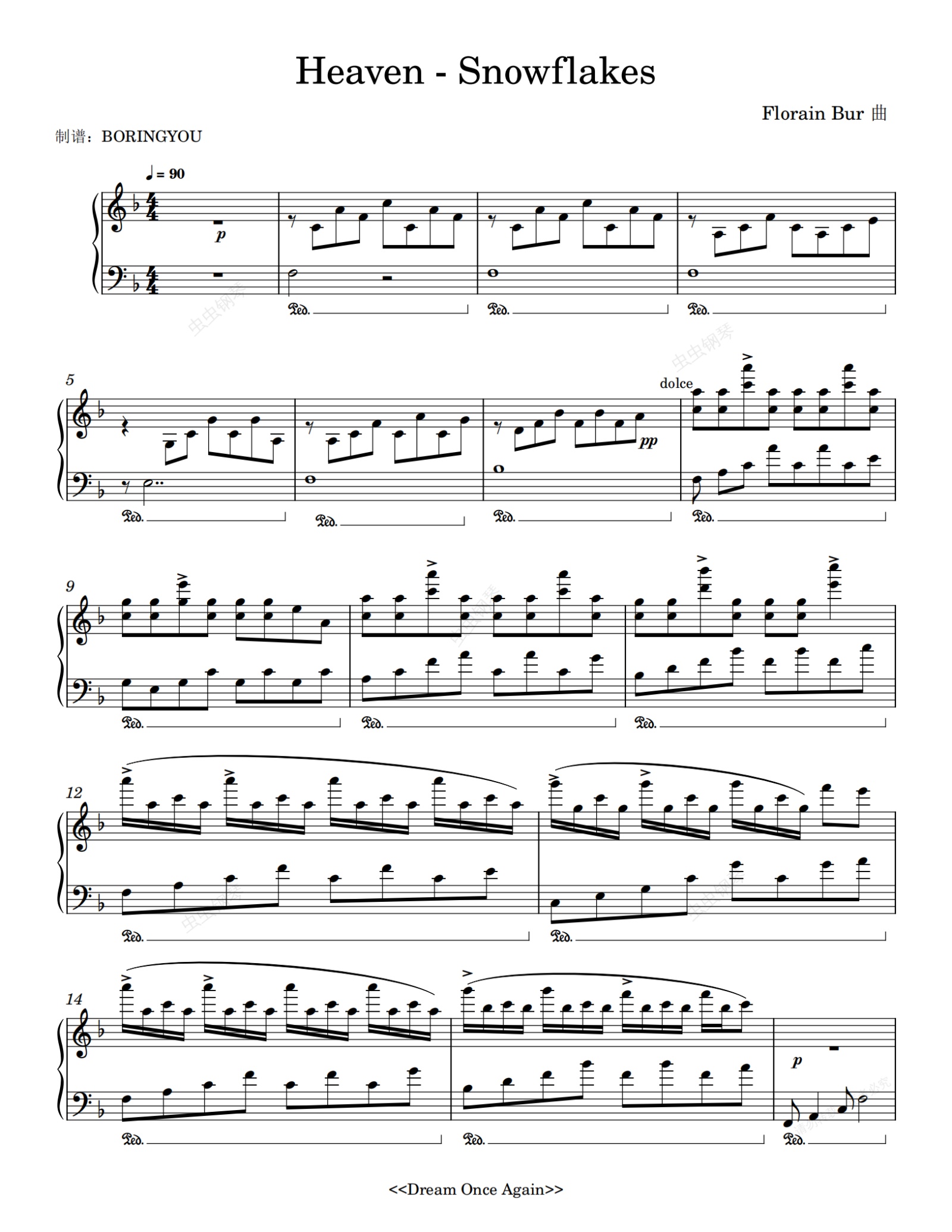 钢琴谱:《Heaven - Snowflakes》Florian Bur