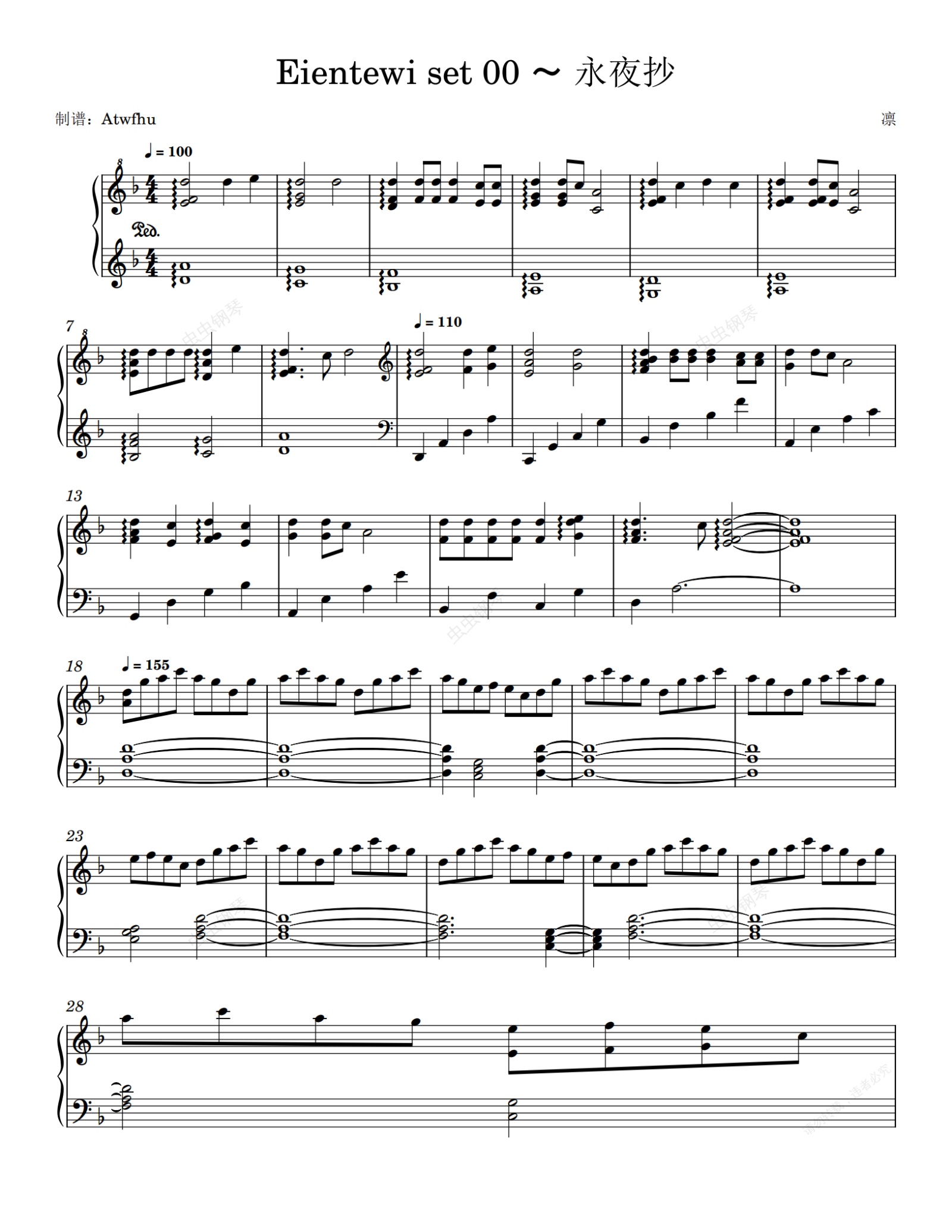 钢琴谱:【东方project】Eientewi set 00 〜 永夜抄 -凛