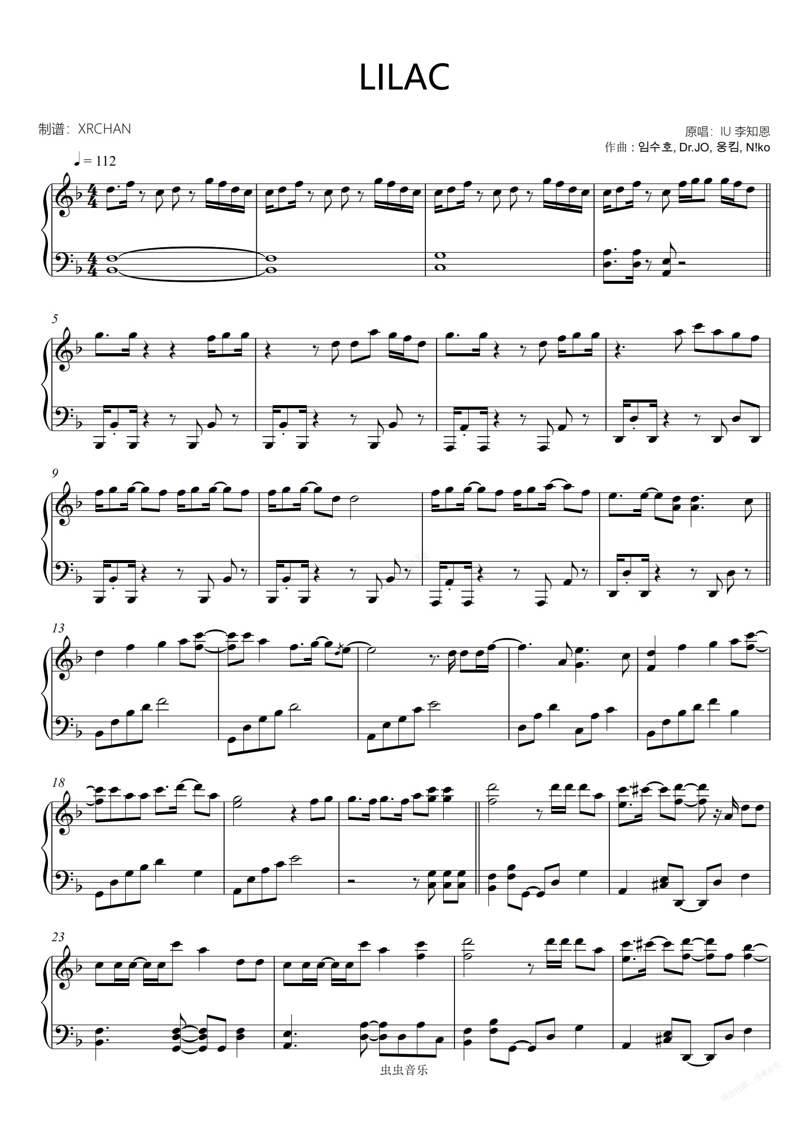 钢琴谱:LILAC 李知恩(IU)