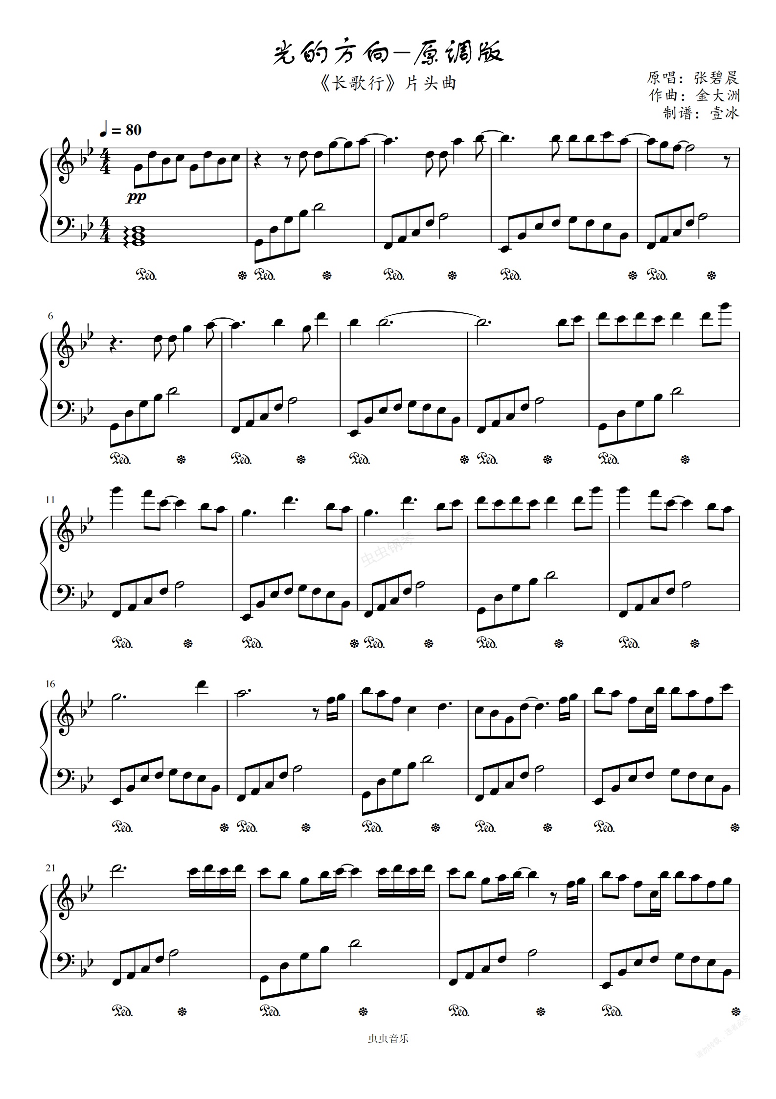 钢琴谱:光的方向//《长歌行》片头曲张碧晨-原调
