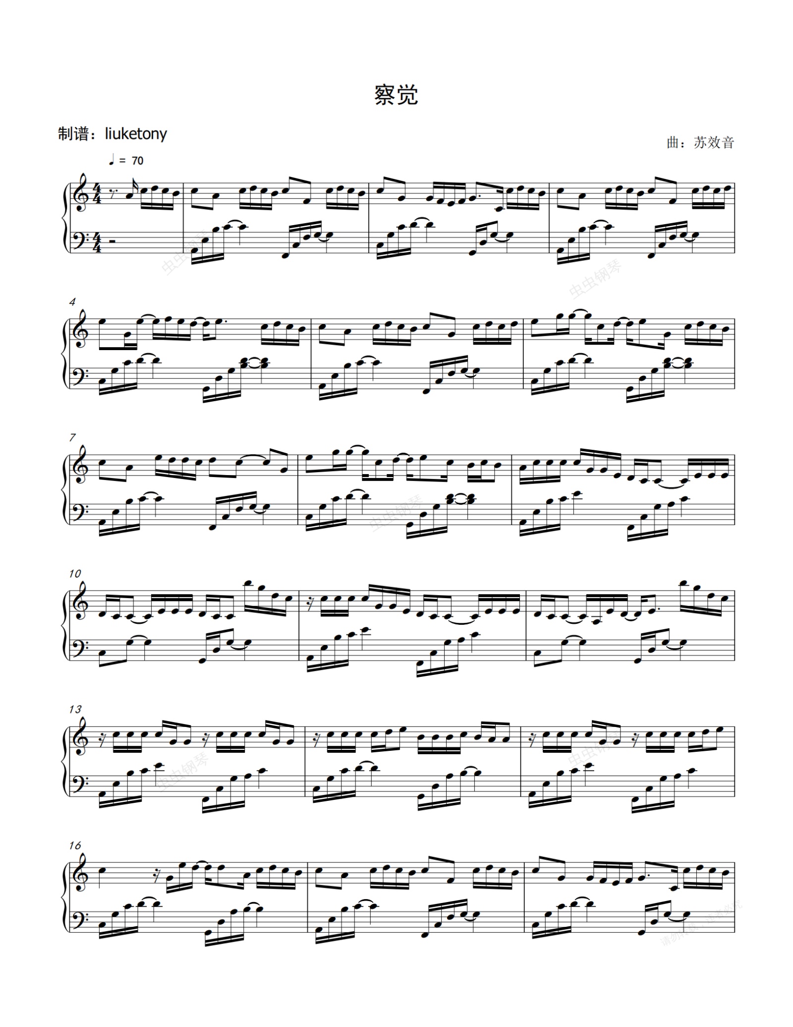钢琴谱:察觉 - 音格概念 钢琴独奏版