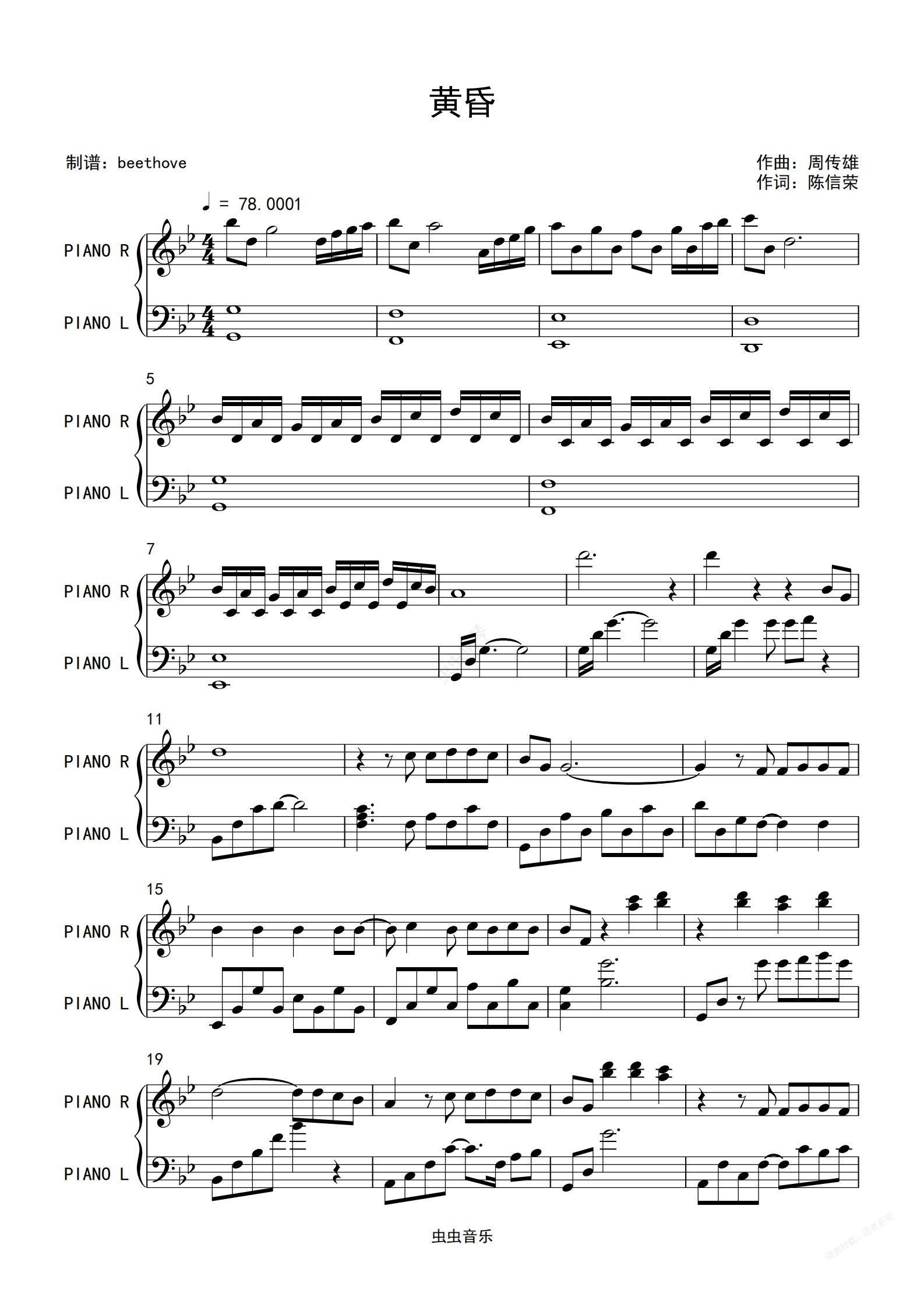 钢琴谱:黄昏-周传雄钢琴独奏