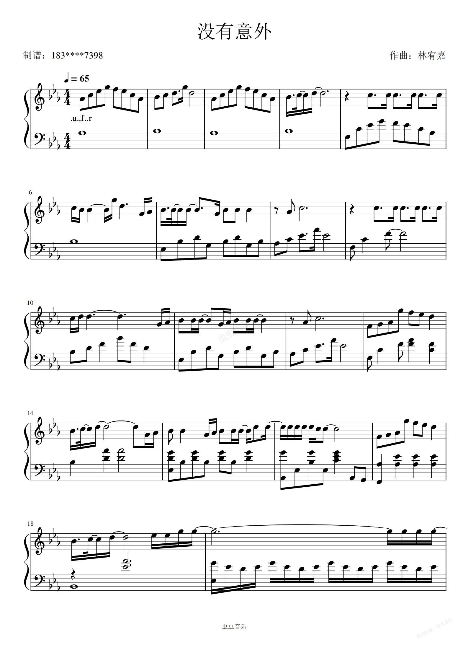 钢琴谱:没有意外 简单好听原调bE 弹奏