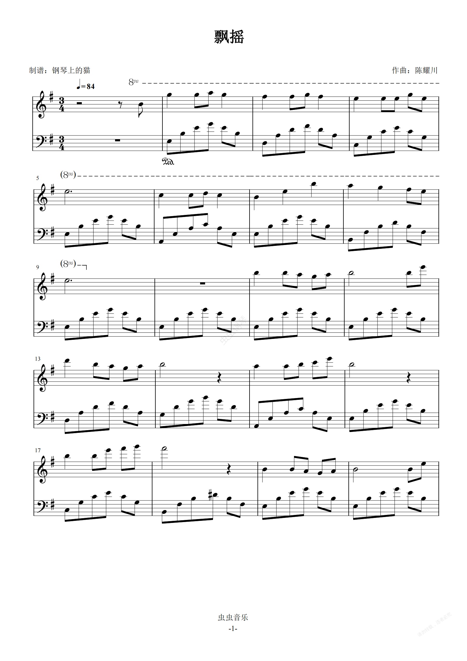 钢琴谱:飘摇 周迅 简易版 流行经典