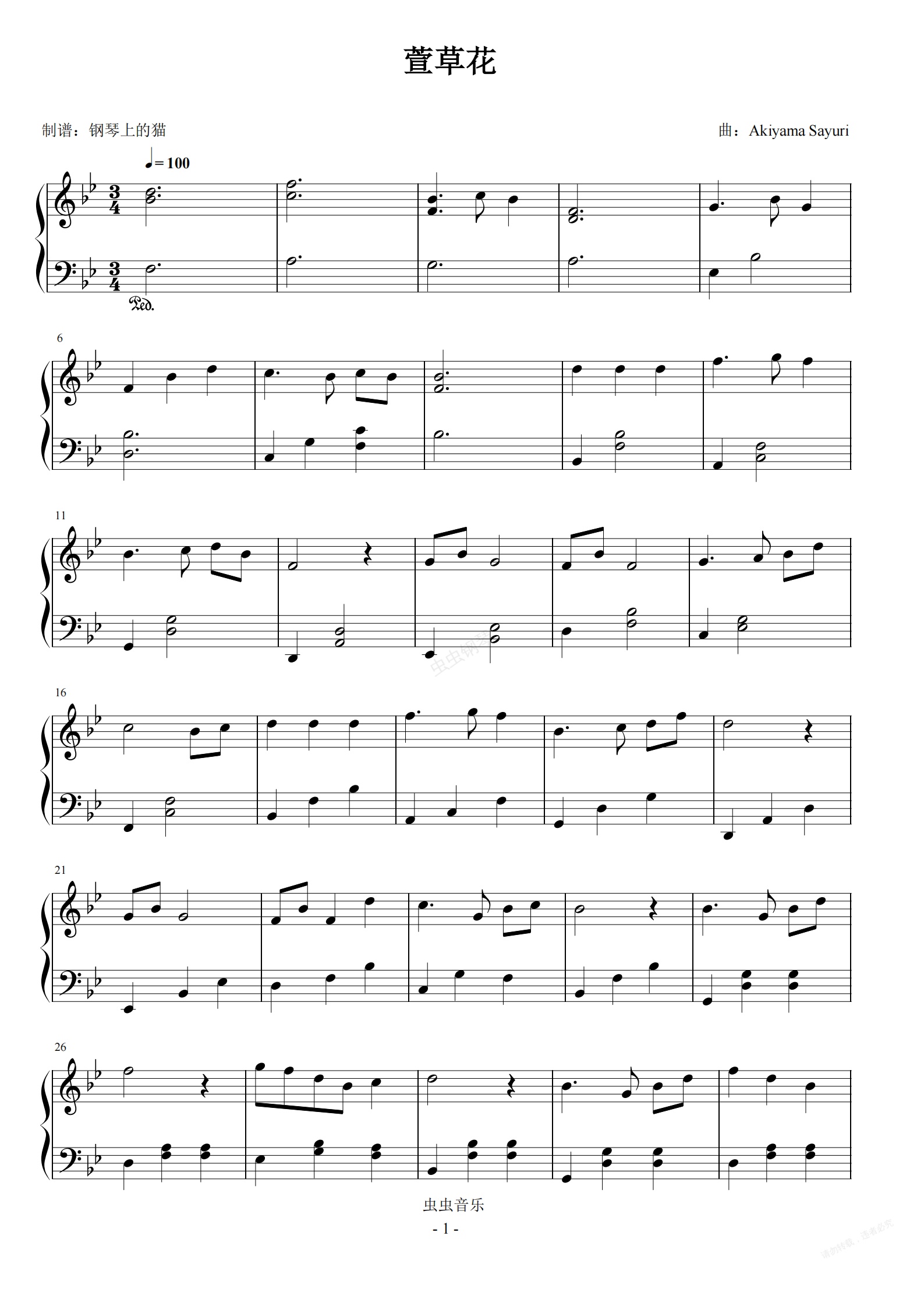 钢琴谱:萱草花 《你好,李焕英》插曲 简易版
