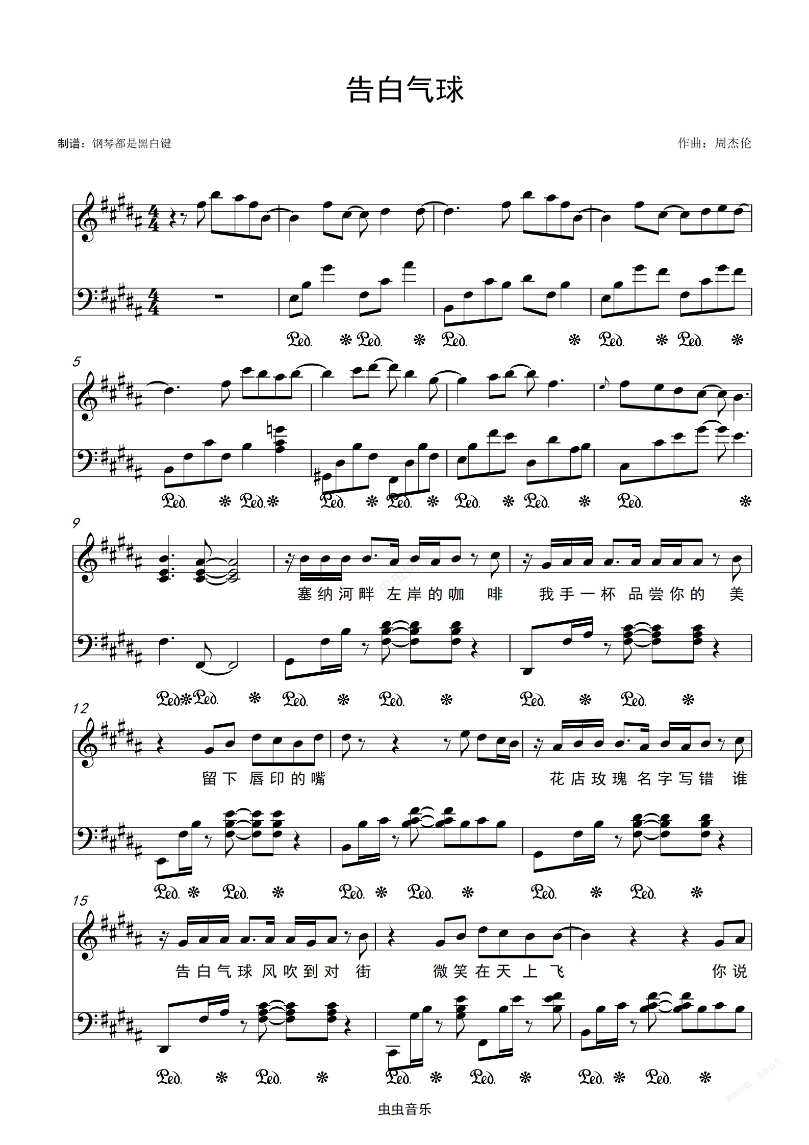 方文山为周杰伦创作了《印地安老斑鸠》之后,在《周杰伦的床边故事》这张专辑里为周杰伦量身打造了一首甜美浪漫曲风的歌曲——《告白气球》喜欢的朋友弹、唱、给男朋友女朋友听哦