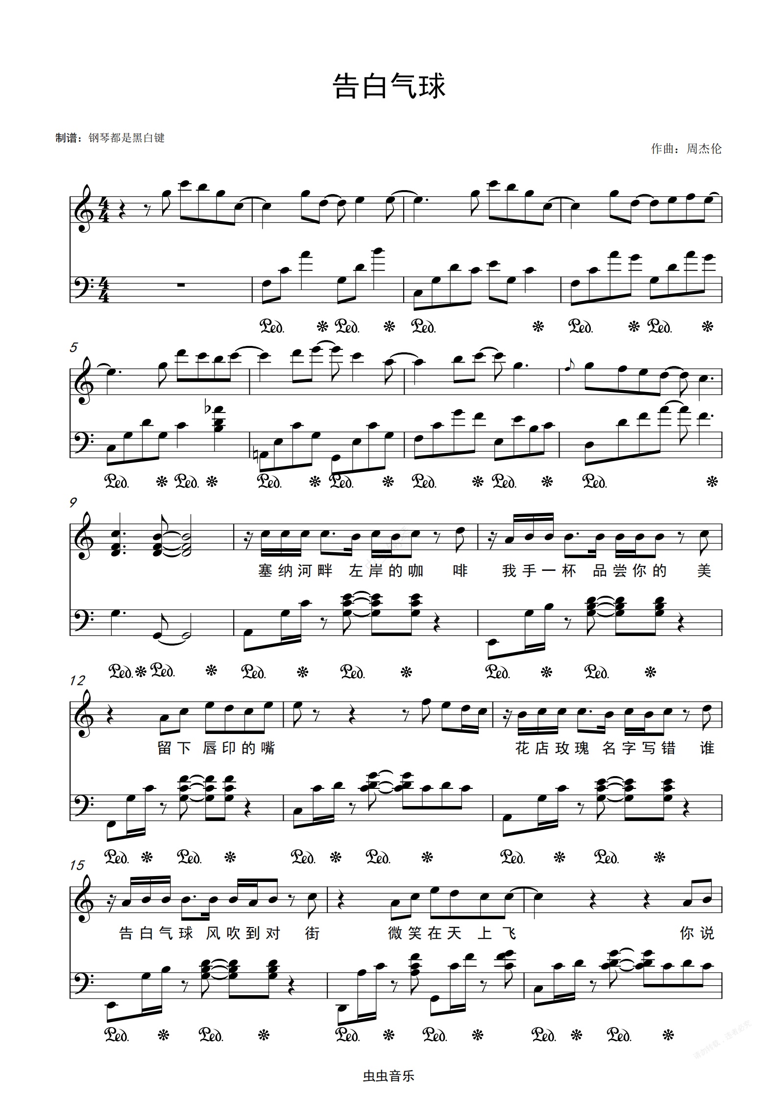 方文山为周杰伦创作了《印地安老斑鸠》之后,在《周杰伦的床边故事》这张专辑里为周杰伦量身打造了一首甜美浪漫曲风的歌曲——《告白气球》喜欢的朋友弹、唱、给男朋友女朋友听哦