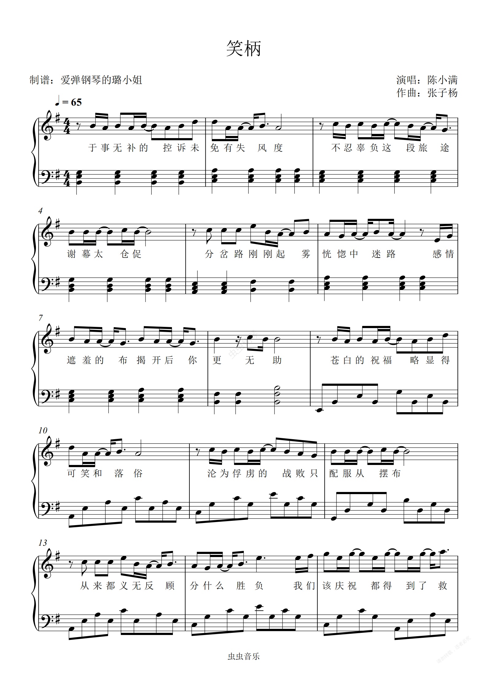 钢琴谱:笑柄 - G调原调 - 简化版