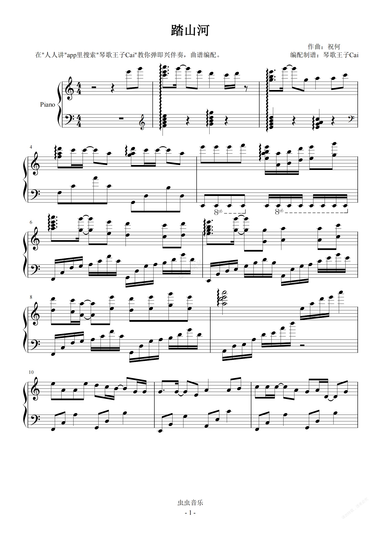 钢琴谱:踏山河(琴歌王子Cai钢琴版)C调