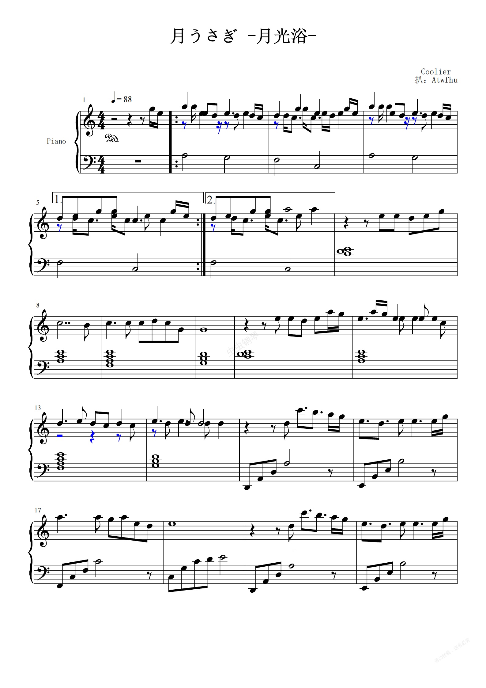 钢琴谱:【东方project】月うさぎ -月光浴- Coolier