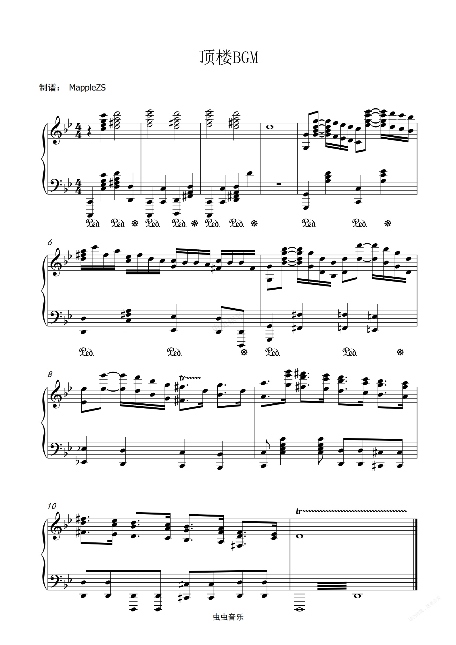 钢琴谱:顶楼超燃BGM—MappleZS版