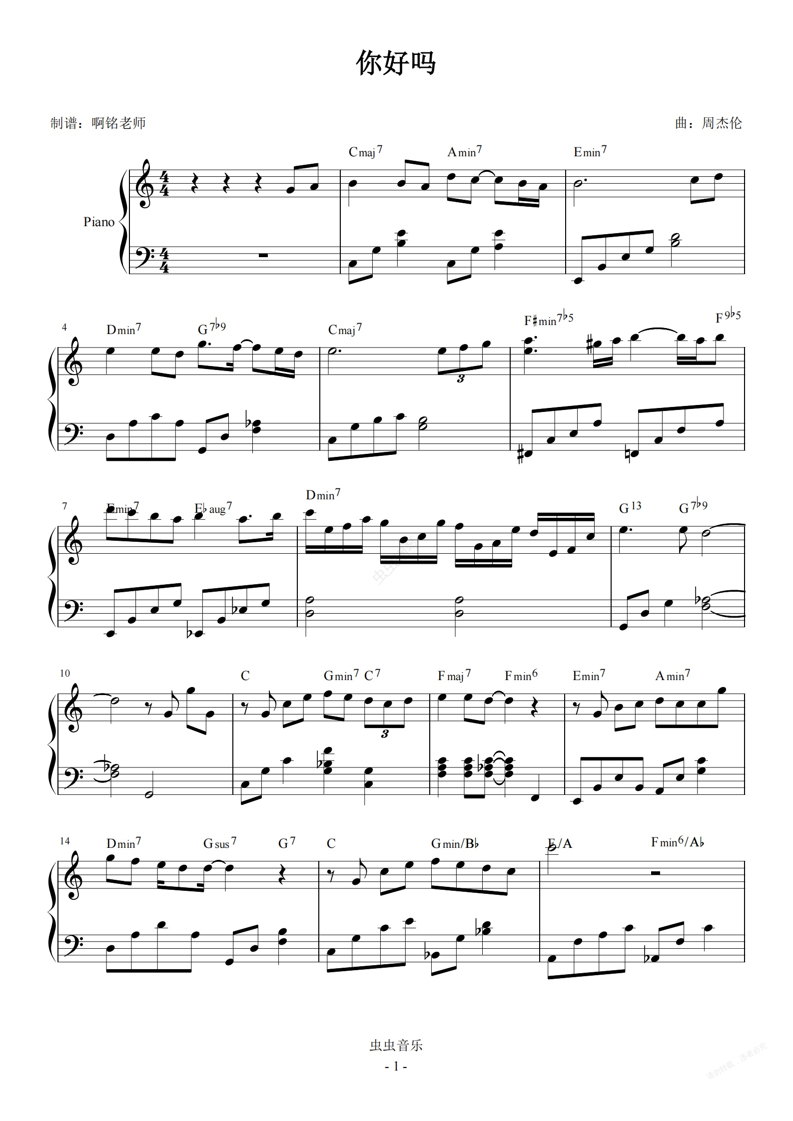 钢琴谱:你好吗 C调简易 原版和弦