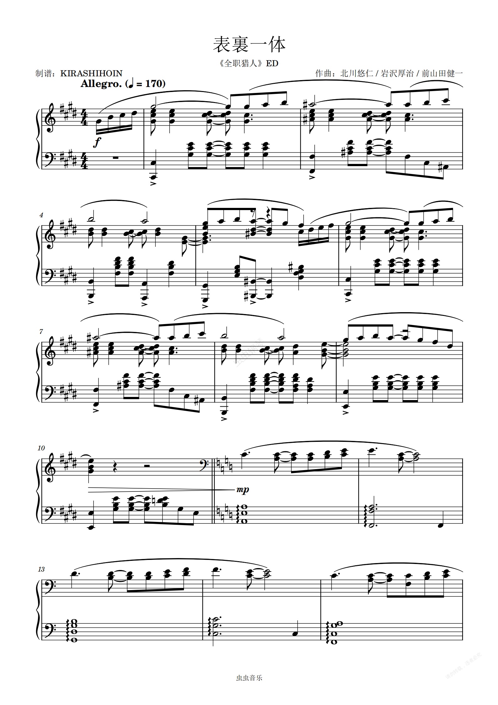 钢琴谱:表裏一体/表里一致(《全职猎人》ED)