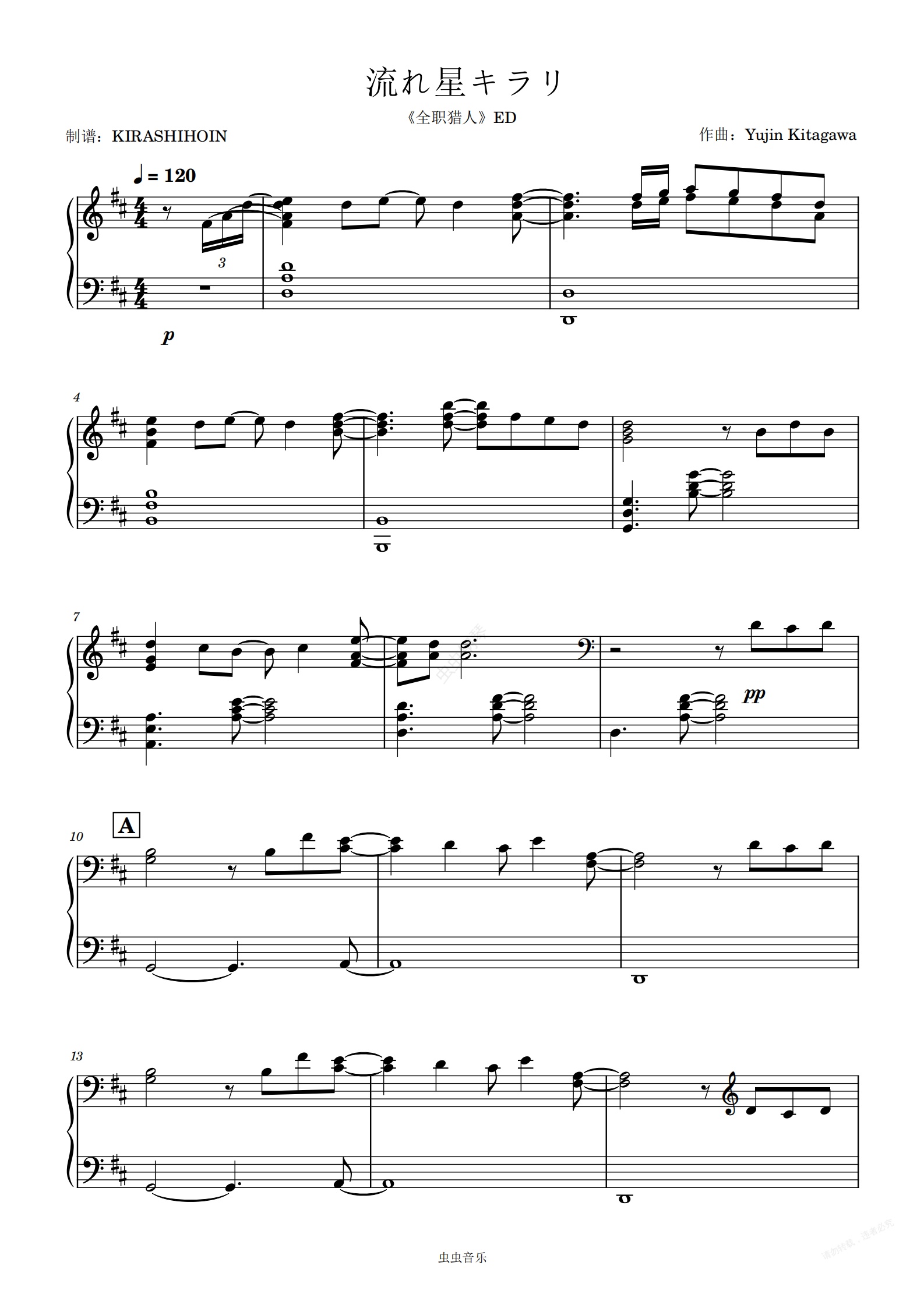钢琴谱:流れ星キラリ(《全职猎人》ED)