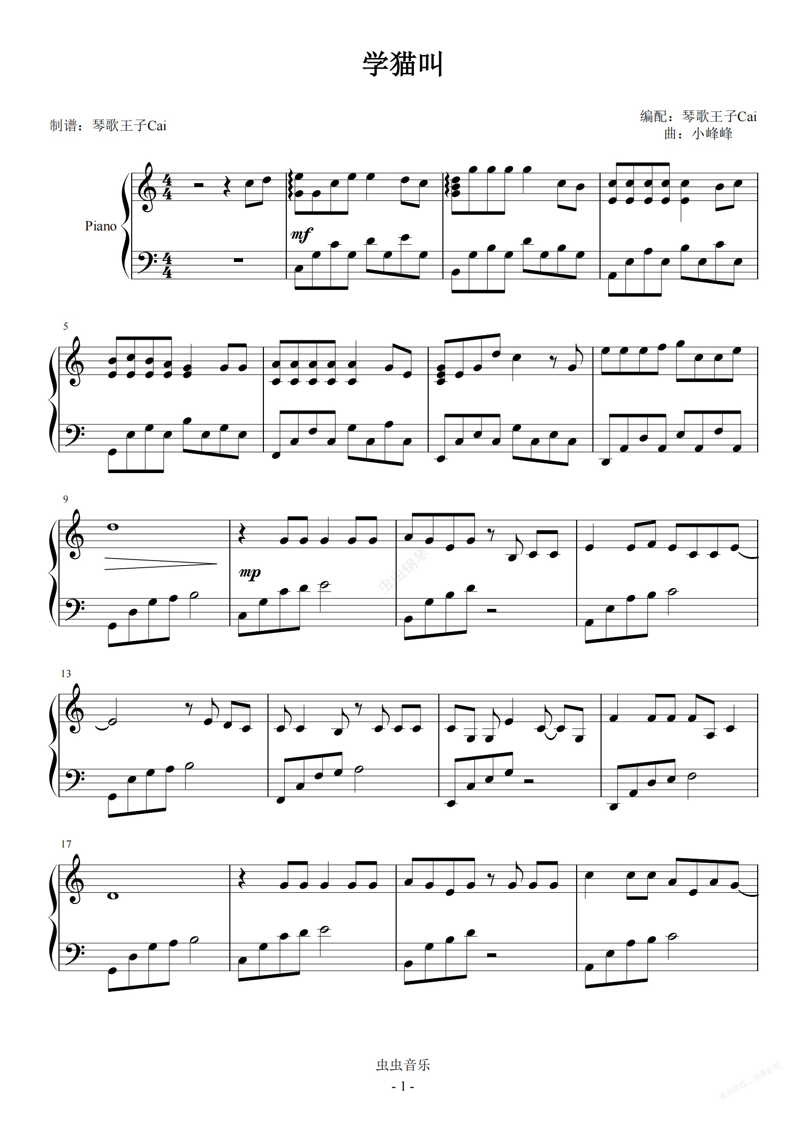 钢琴谱:学猫叫(琴歌王子Cai钢琴版)C调