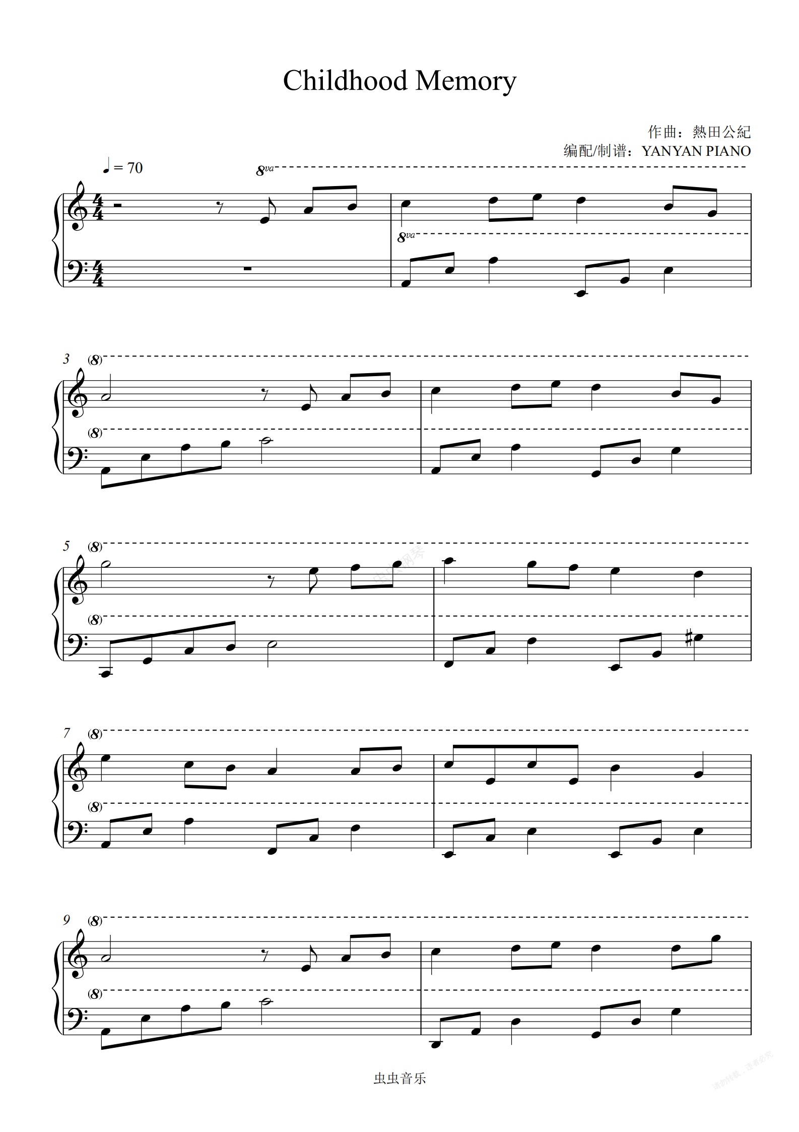 钢琴谱:班得瑞【Childhood Memory】热田公纪