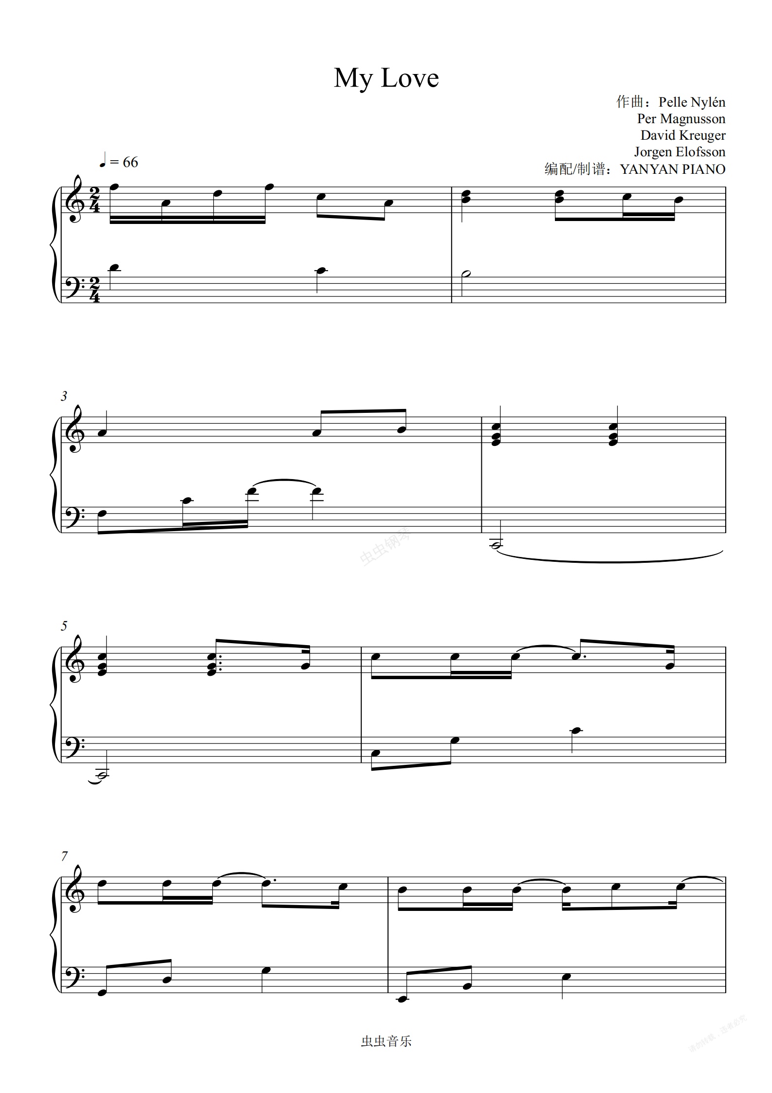 钢琴谱:西域男孩【My Love】Westlife
