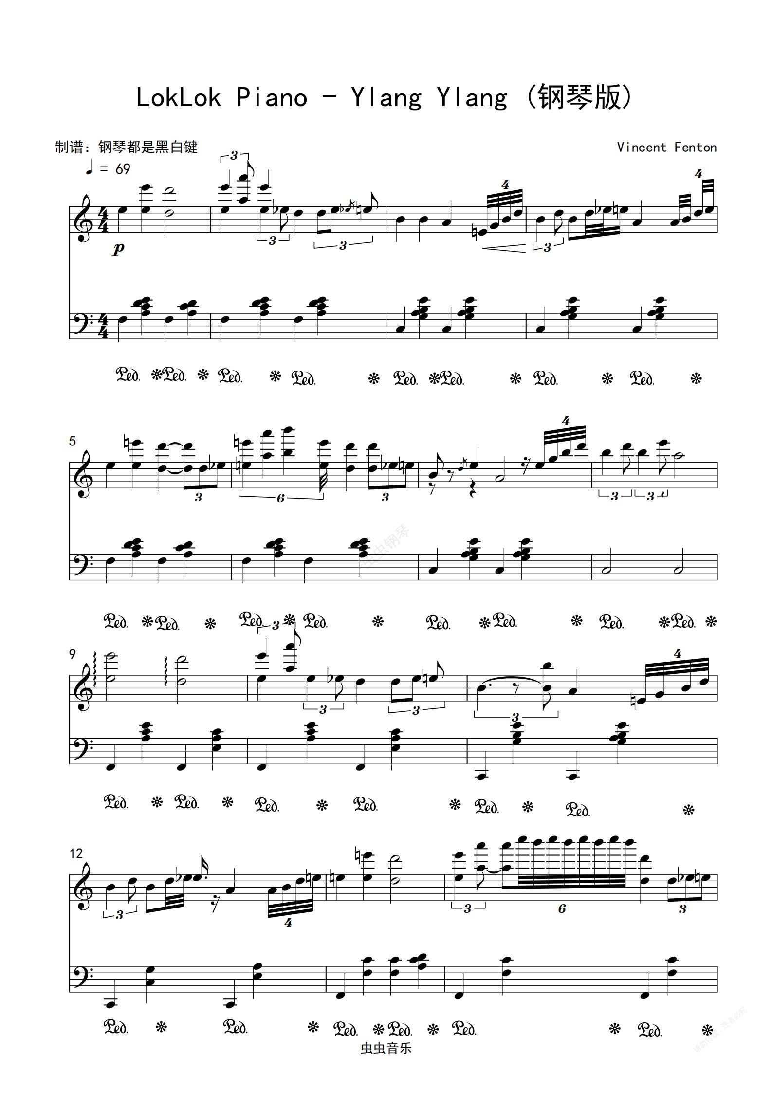 钢琴谱:LokLok Piano - Ylang YlangC调 (钢琴版)完美还原